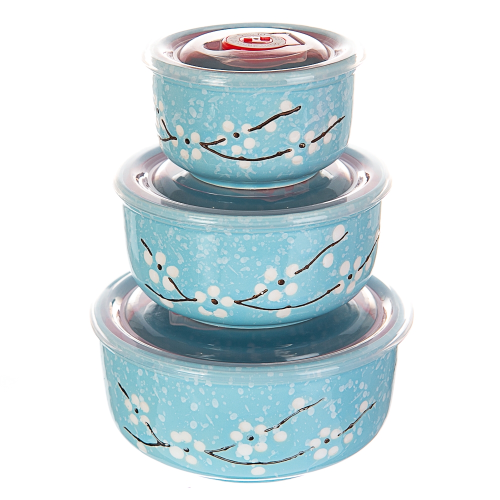 > УЦІНКА Набір керамічних контейнерів з вакуумною кришкою "Голубий" (Дефект фарбування,дефект лиття,плями) (00BR-049JA-C)