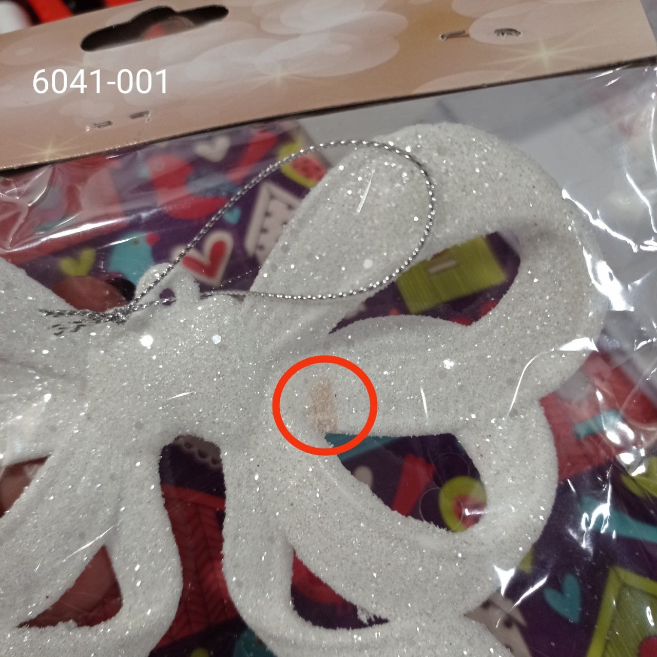 УЦІНКА Ялинкова іграшка "Блискучий бантик", біла, 12 см (Плями від клею,сдерті блискітки) (00BR-6041-001)