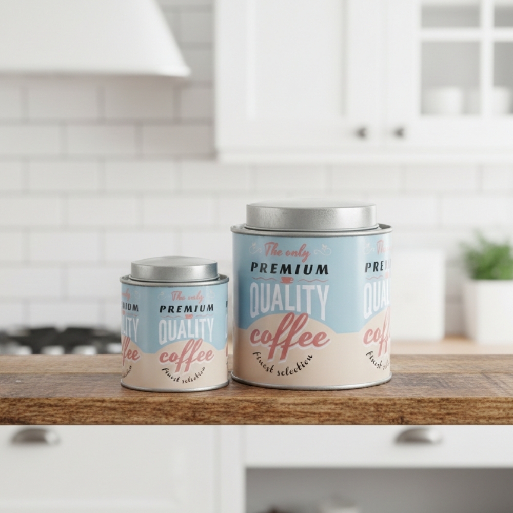Набір металевих коробок «Час для чашечки кави» просто створений для того, щоб його всім дарувати. Універсальне поєднання небесно-блакитного і бежевого відтінків сприяють тому, щоб презентувати цей набір і дівчатам, і чоловікам. Це відмінний і практичний подарунок. Адже всі ми любимо насолодитися чашечкою ароматної кави або чаю на початку дня. А зберегти їх аромат і якість допоможе саме цей красивий набір, з щільно прилеглою кришкою.