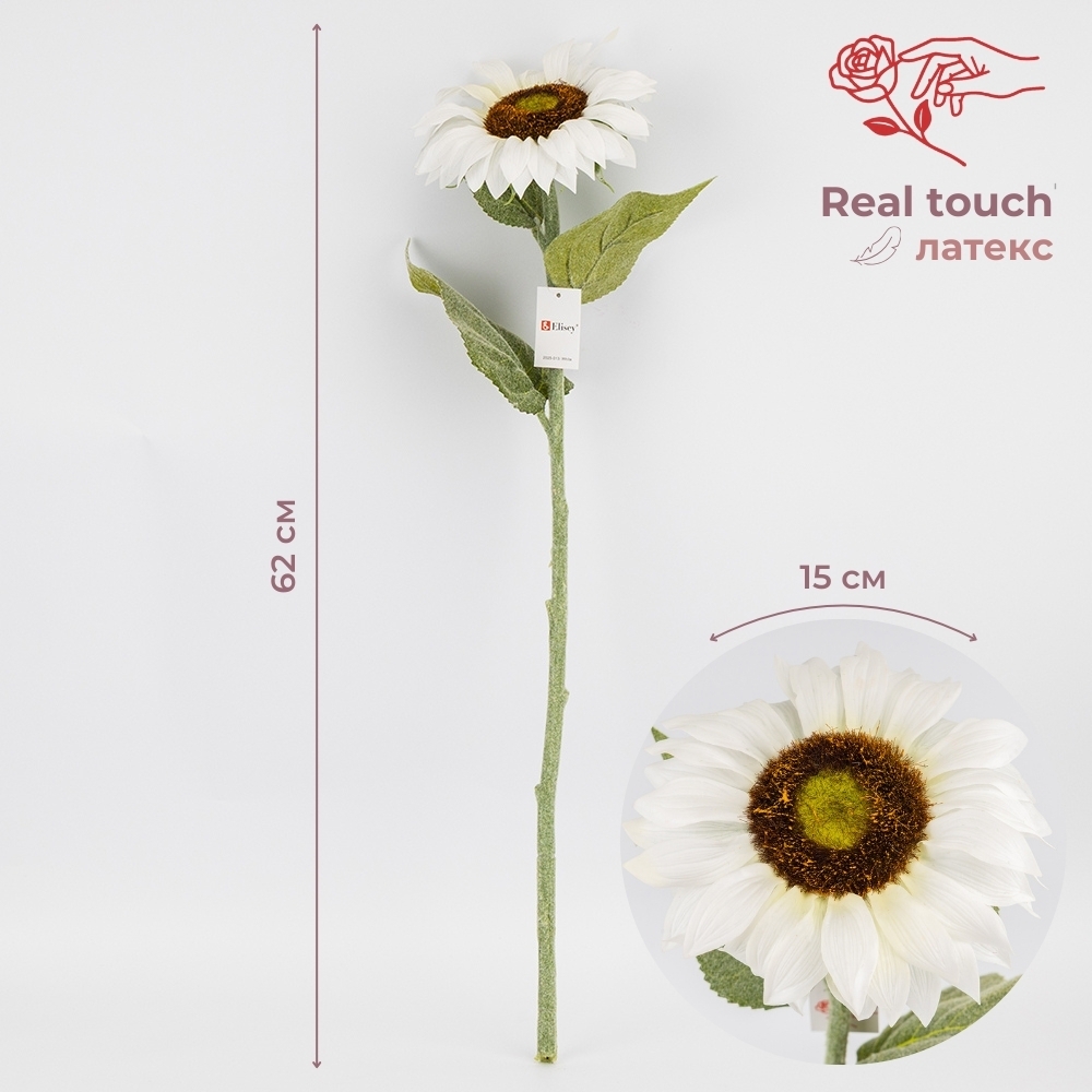 Штучний соняшник з ефектом живого дотику, білий, 62 см (2025-013)