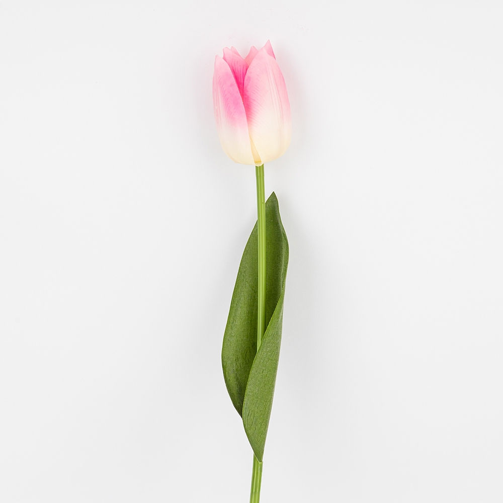 Висота — 45 см. Діаметр бутона — 5 см. Штучний тюльпан з колекції «Ніжний дотик» вражає своєю реалістичністю — пелюстки мають м’яку натуральну текстуру, яку практично неможливо відрізнити від живої квітки. Міцне та водночас гнучке стебло дозволяє легко надавати тюльпану потрібну форму, що робить його ідеальним для флористичних композицій, оформлення фотозон, залів, святкових декорацій чи інтер’єрного декору. Листя з латексу додає ще більше природності та глибини образу. Професійний вибір для ресторанів, готелів, фотостудій та флористів, яким потрібна квітка, що не відрізняється від живої та зберігає бездоганний вигляд у будь-яких умовах.