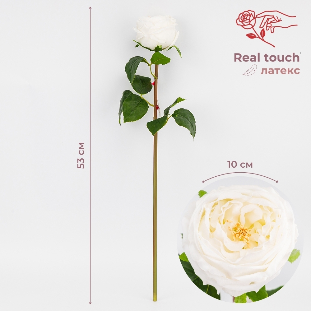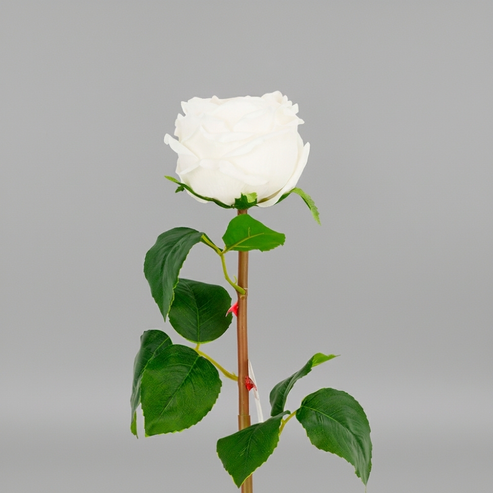 Висота — 53 см. Діаметр бутона — 10 см. Штучна піоновидна троянда з колекції «Ніжний дотик» вражає максимальною реалістичністю — пелюстки мають м’яку текстуру, яку практично неможливо відрізнити від живої квітки. Вона виглядає натурально, зберігає форму та бездоганний вигляд навіть при багаторазовому використанні. Гнучке стебло дозволяє легко формувати композиції, а листя з латексу додає ще більше природності. Ідеально підходить для флористичних робіт, оформлення фотозон, залів, столів, а також для декору ресторанів, готелів та будь-яких інтер’єрів, де потрібна вишукана й правдоподібна квітка, що не відрізняється від живої.