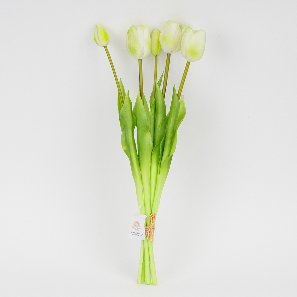 Букет латексних тюльпанів, 5 бутонів, біло-зелений, 45 см (2026-002/white)