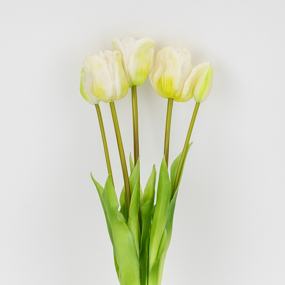 Букет латексних тюльпанів, 5 бутонів, біло-зелений, 49 см (2026-005/white)