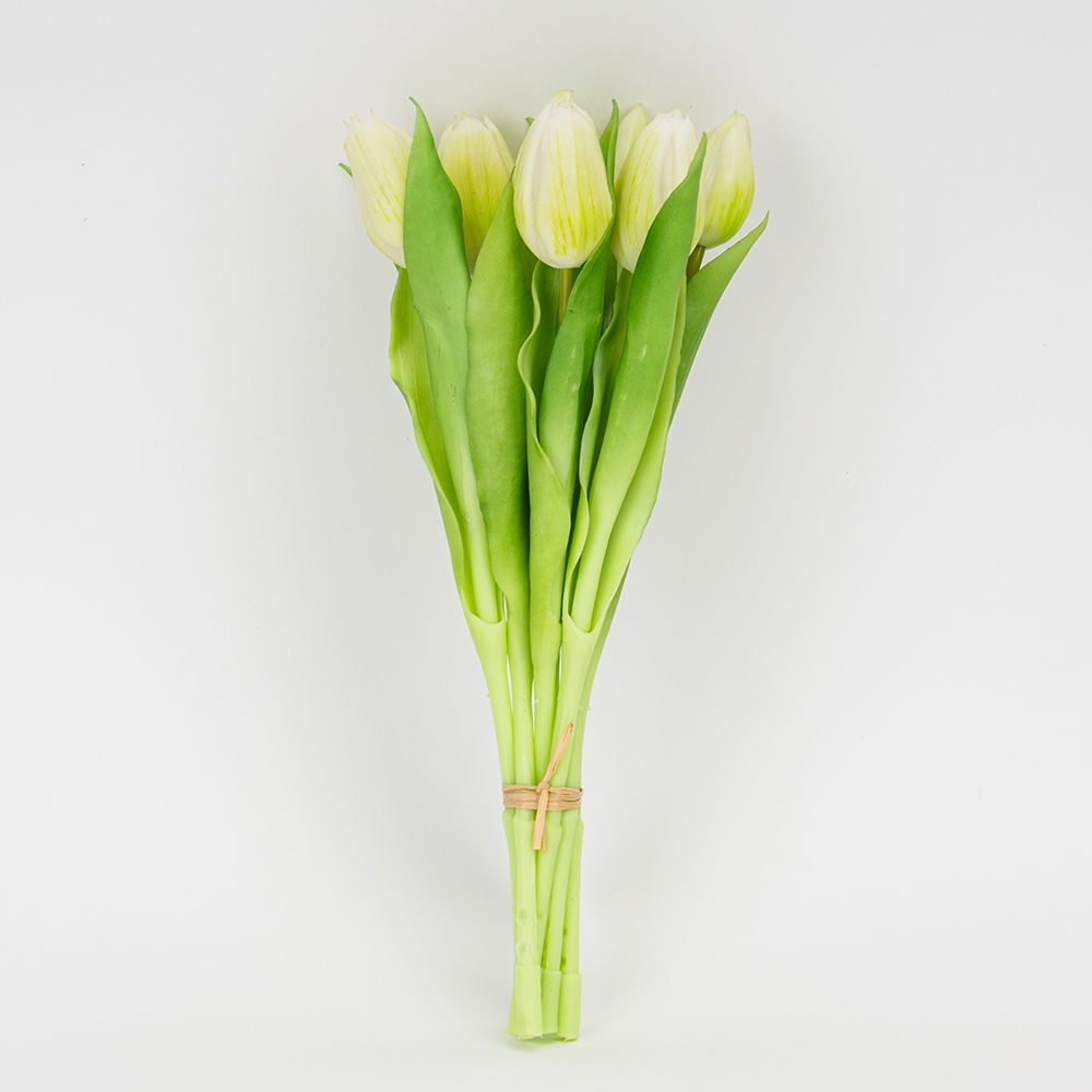 Букет латексних тюльпанів, 7 бутонів, біло-зелений, 31 см (2026-006/white)