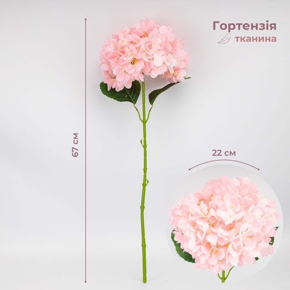 Штучна гортензія, рожева, 67 см (2026-009/pink)