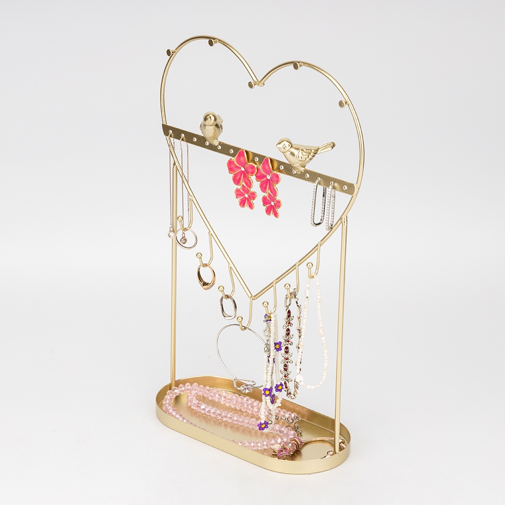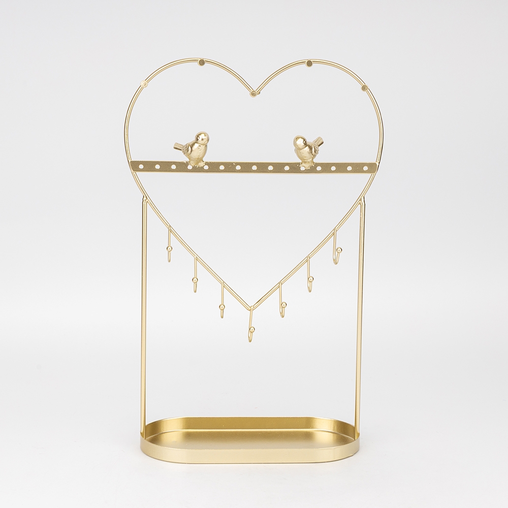 Висота — 33 см, довжина — 18 см, ширина — 9 см. Настільна підставка для прикрас — справжня втілення елегантності та краси. Виготовлена з металу з золотистим покриттям, вона має витончений дизайн, що відтіняє його блискучий вигляд. Підставка має різноманітні відділення та крючки для розміщення прикрас будь-якої форми і розміру. Її стильний дизайн, який поєднує класичні форми з сучасними акцентами, додає вигляду не лише функціональності, але й вишуканості. Ця підставка — ідеальне рішення для організації та відображення вашої колекції прикрас, створена, щоб підкреслити красу кожного предмета.