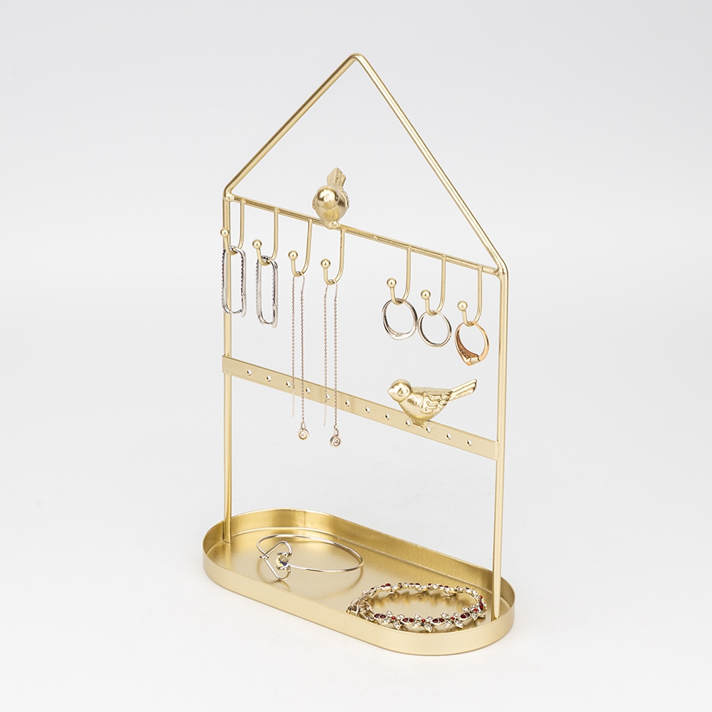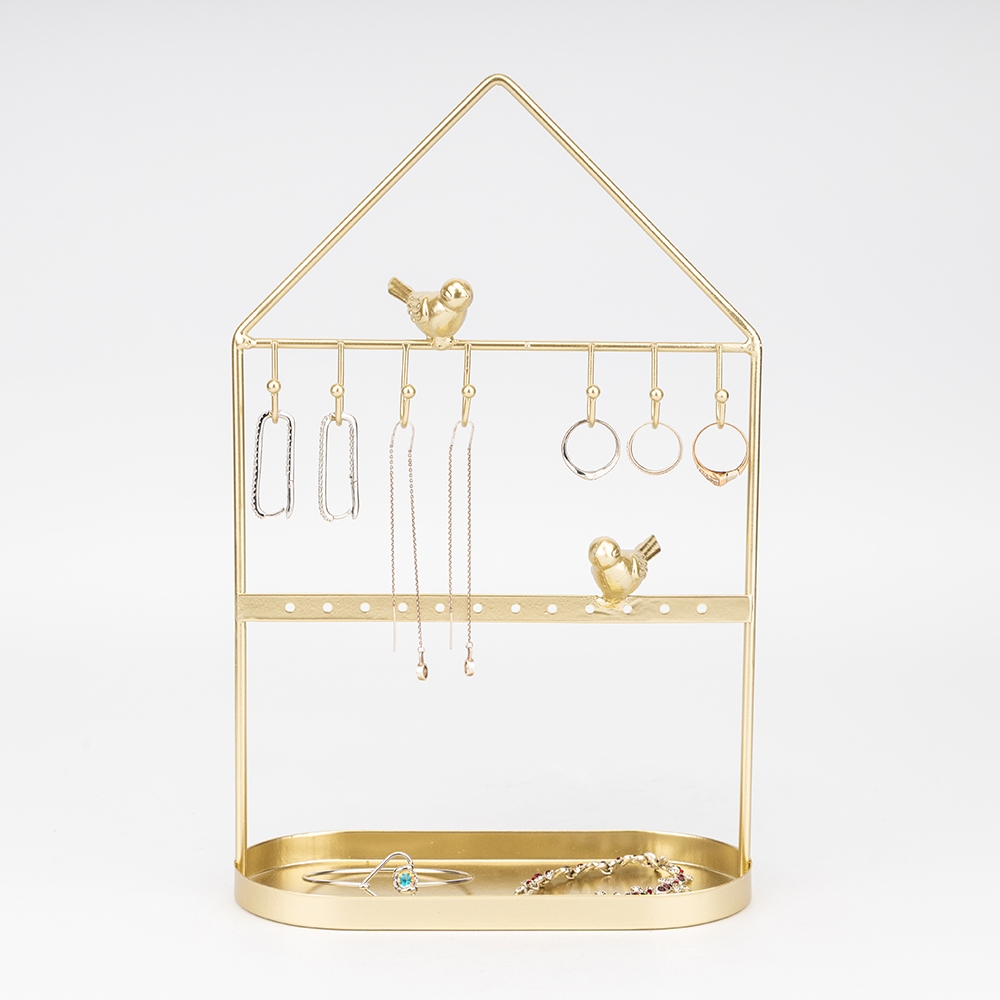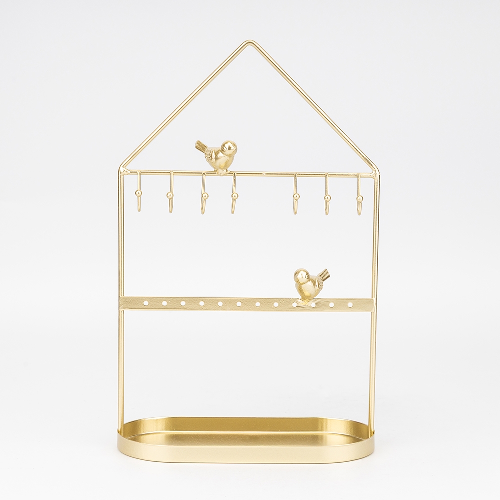 Висота — 29,5 см, довжина — 18 см, ширина — 9 см. Настільна підставка для прикрас — справжня втілення елегантності та краси. Виготовлена з металу з золотистим покриттям, вона має витончений дизайн, що відтіняє його блискучий вигляд. Підставка має різноманітні відділення та крючки для розміщення прикрас будь-якої форми і розміру. Її стильний дизайн, який поєднує класичні форми з сучасними акцентами, додає вигляду не лише функціональності, але й вишуканості. Ця підставка — ідеальне рішення для організації та відображення вашої колекції прикрас, створена, щоб підкреслити красу кожного предмета.