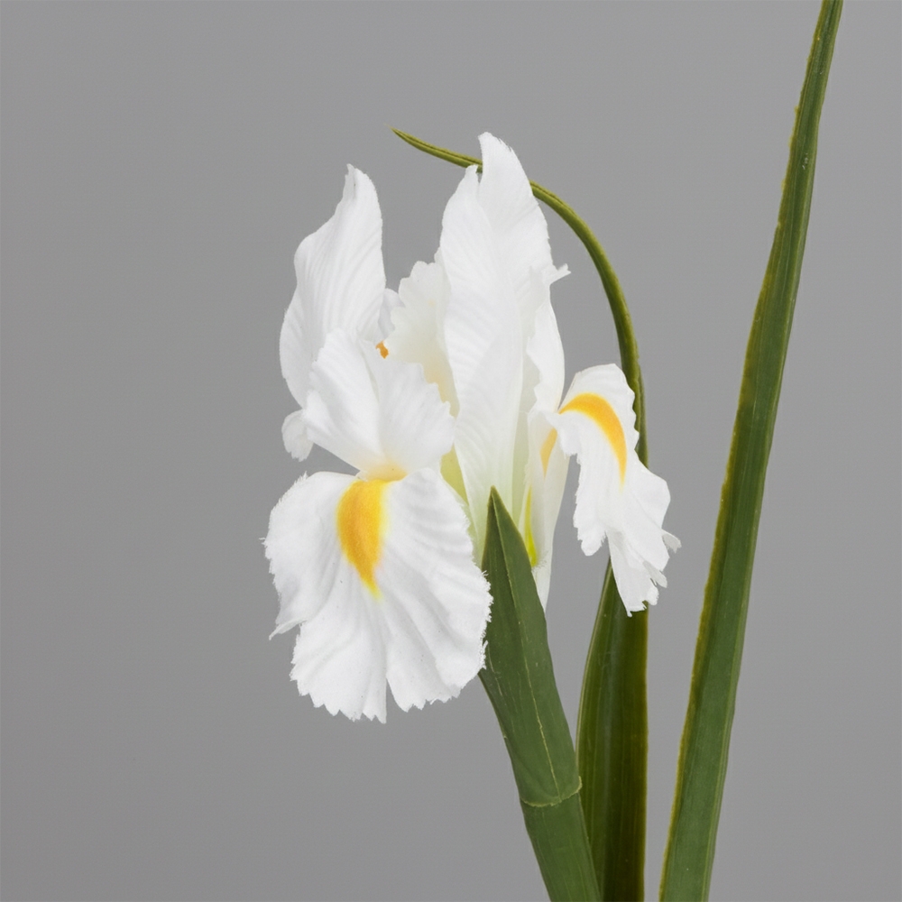 Висота — 70 см. Діаметр бутона — 5 см. Матеріал квітки — тканина, листя — латекс. Штучний ірис — витончена декоративна квітка з подовженими листками та виразною формою бутона, яка додає композиціям елегантності та структури. Реалістичне виконання дозволяє використовувати ірис як у сольних вазах, так і в поєднанні з іншими декоративними рослинами. Підходить для інтер’єрного декору та професійної флористики.