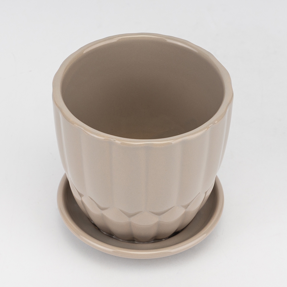 Висота — 12 см, діаметр — 12 см. Об'єм — 1 л. Піддон є невід’ємною частиною кашпо, міцно прикріплений до основи! Спеціальний дренажний отвір у дні дозволяє відводити зайву вологу, підтримуючи оптимальний водний баланс для здорового росту рослин. Керамічне кашпо — стильний та практичний елемент декору, який ідеально доповнить інтер’єр. Завдяки продуманому дизайну та приємним натуральним відтінкам воно гармонійно поєднується з будь-яким стилем — від мінімалізму до скандинавського чи класичного. Кашпо виготовлене з високоякісної кераміки, що забезпечує його довговічність, стійкість та охайний вигляд протягом багатьох років. Форма з рельєфом додає виробу текстури та вишуканості, а гладке глянцеве покриття створює елегантний акцент у просторі.