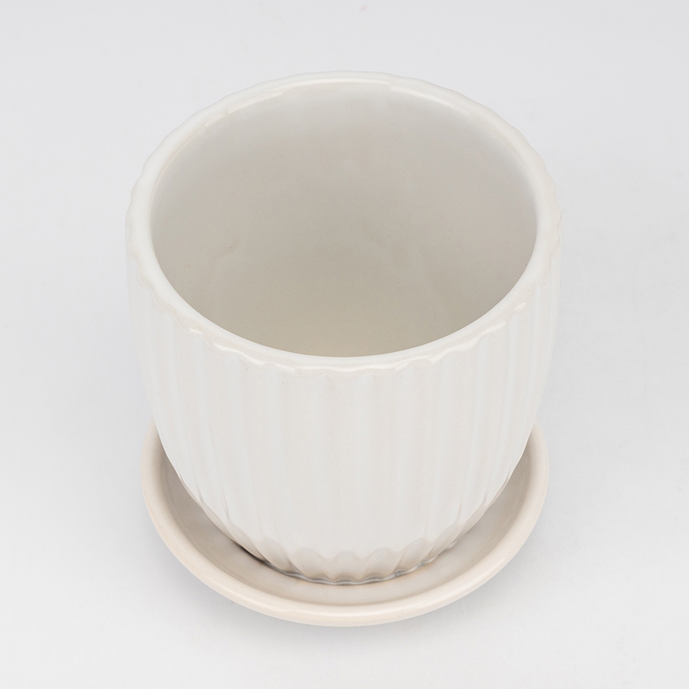 Керамічне кашпо "Вертикальна хвиля", біле, 12 см, 1 л (2029-006/white)