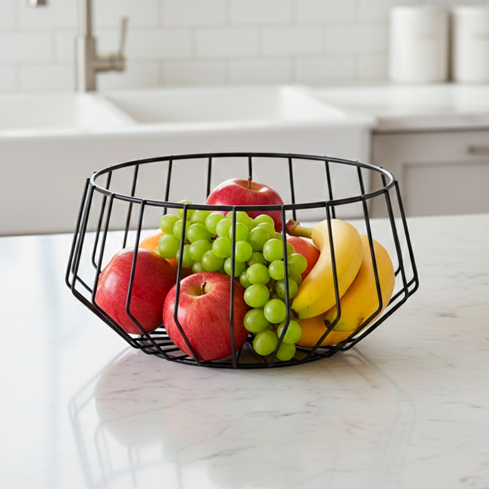 Діаметр — 28 см, висота — 14 см. Фруктівниця металева «Соната» — стильний елемент для сервірування та інтер’єрного декору, який поєднує практичність і сучасний дизайн. Лаконічна форма з металевих ліній забезпечує зручне розміщення фруктів і гарну вентиляцію, зберігаючи їх свіжість. Така фруктівниця гармонійно виглядає на кухонному столі, у вітрині, ресторані або кав’ярні та підходить для оформлення просторів у стилі модерн, лофт і мінімалізм. Вдалий вибір для дому, HoReCa та декоративного сервірування.