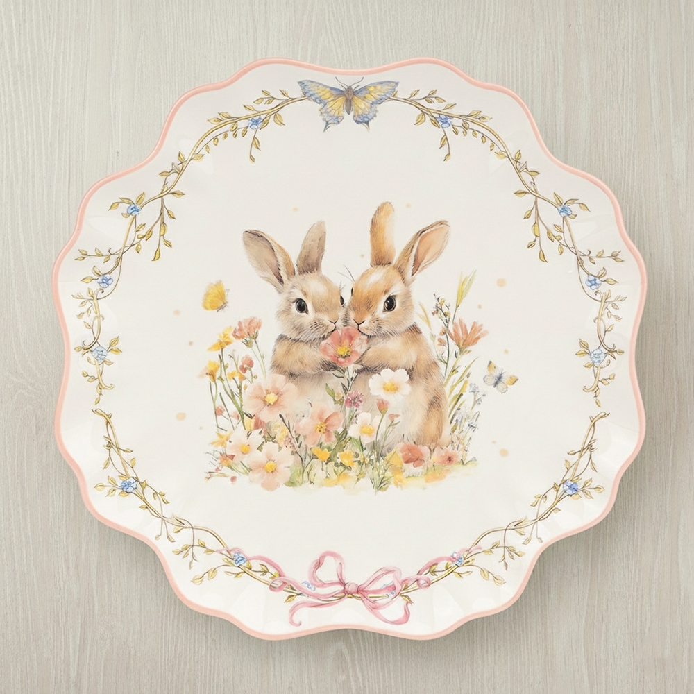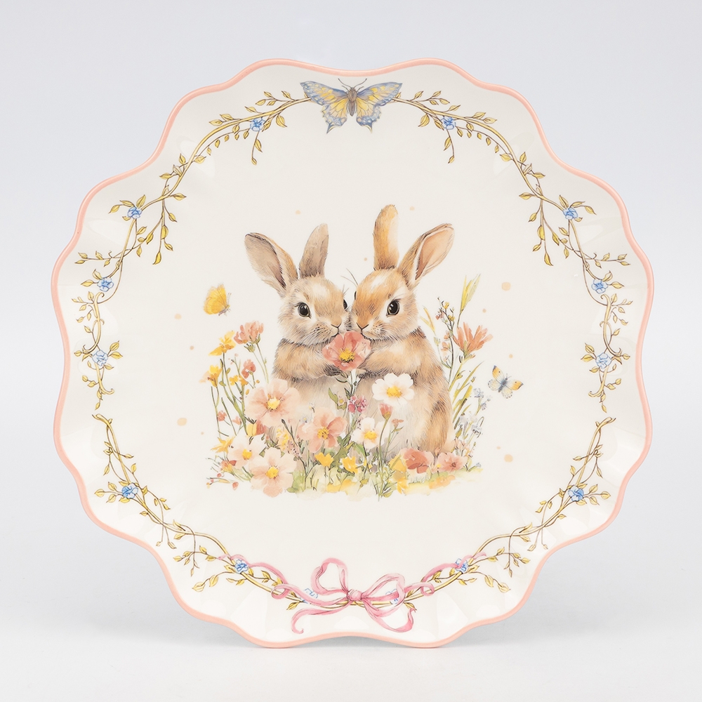Тарілка "Пара кроликів у квітковому полі", біла, 26 см (5104-002)
