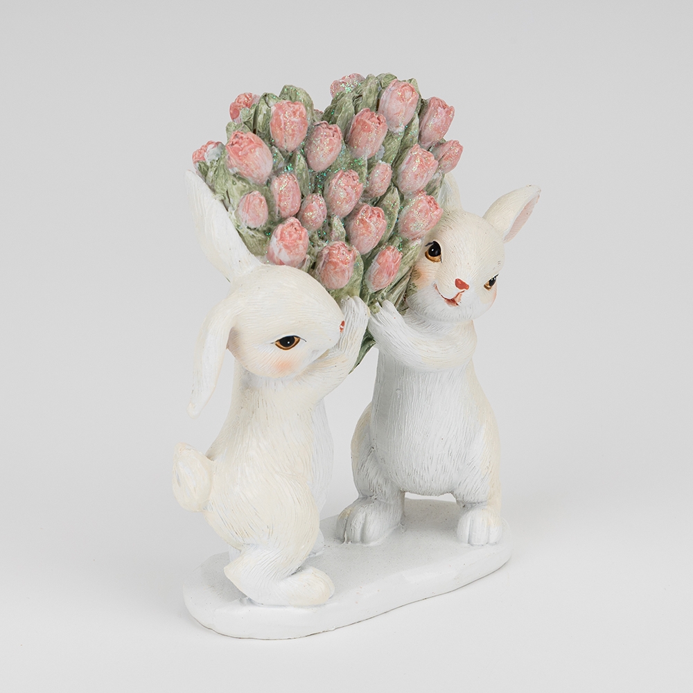 Статуетка "Кролики з квітами", 14,5 см (5105-002)
