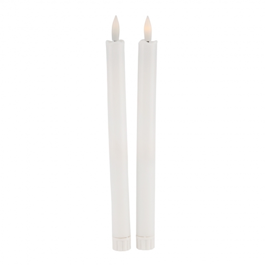 Електричні свічки, працюють від 2 батарейок типу ААА, не входять у комплект. Свічки виготовлені з легкого пластику й оснащені LED-лампочкою, що імітує полум’я. Висота - 26 см, діаметр - 2 см. Їх витягнута форма класичної воскової свічки ідеально підходить для декорування святкових столів, інтер’єрів у стилі HoReCa або фотозон. Завдяки безпечному дизайну їх можна використовувати в місцях з дітьми або вітринних експозиціях. Свічки створюють затишну атмосферу без відкритого вогню та диму.
