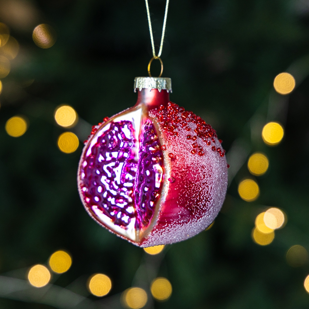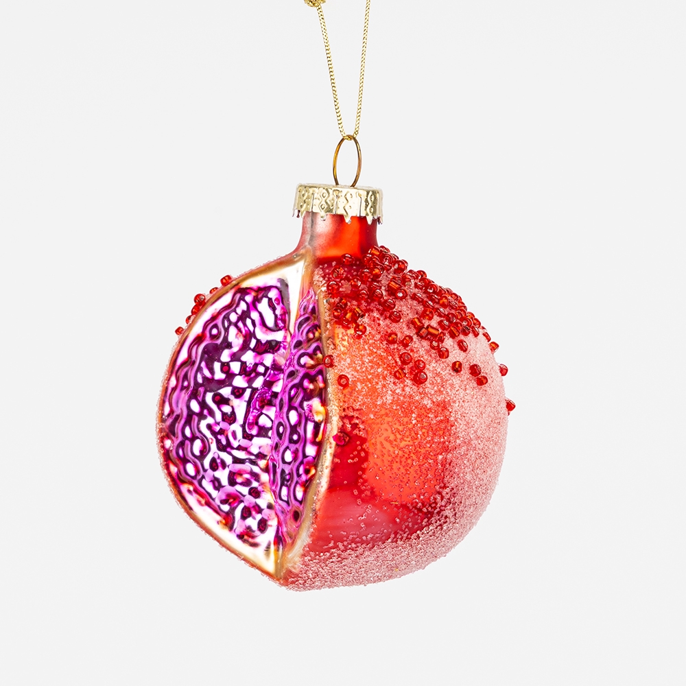 Зверніть увагу, що внаслідок недавньої атаки дронів частина партії цього товару має пошкоджене оригінальне пакування. Також присутній аромат гарі, який повністю вивітрюється протягом деякого часу. Висота іграшки — 8 см, ширина — 7 см. Ця ефектна скляна ялинкова іграшка виконана у формі розрізаного граната, який у багатьох культурах символізує процвітання, родючість, багатство та достаток. Іграшка має насичений червоний колір, що імітує стиглі зерна, та золотисті контури. Вона додасть вашому новорічному дереву глибокий символічний зміст, яскраві кольори та розкішну текстуру.