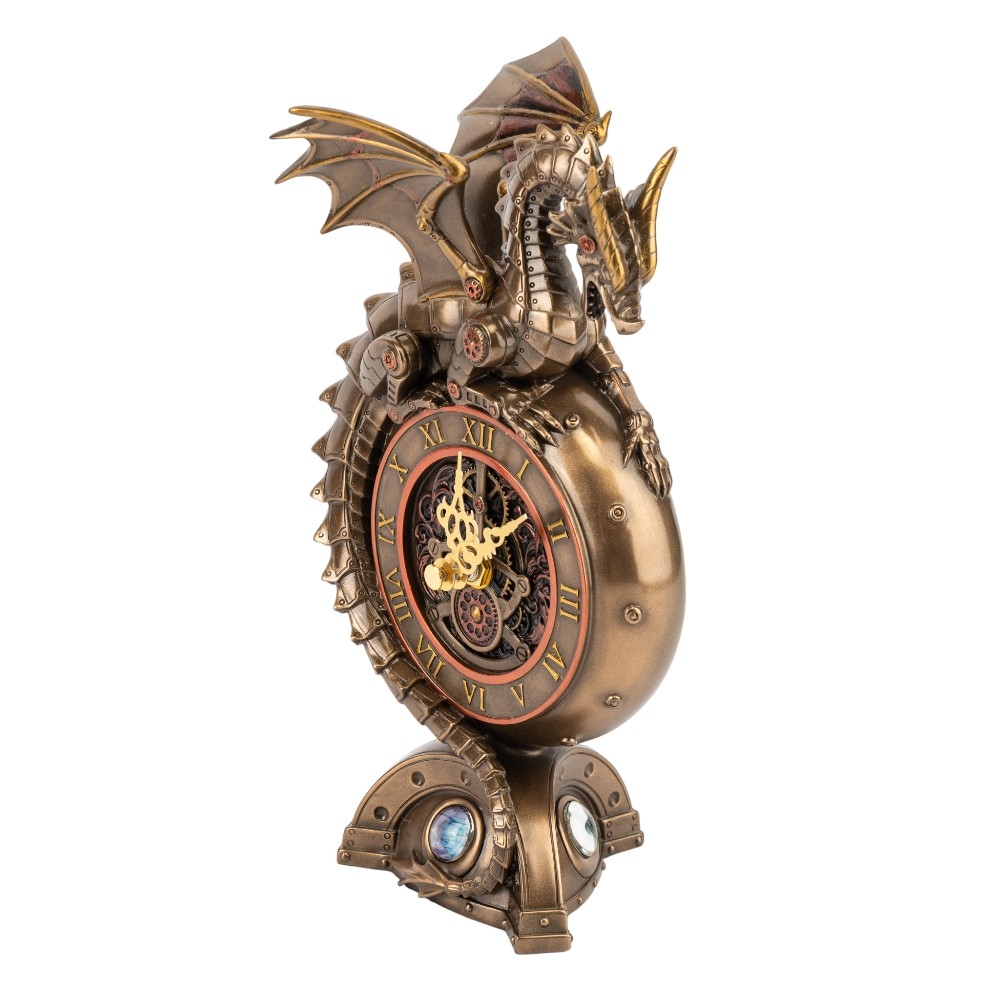 Висота — 23 см, довжина — 12 см, ширина — 10 см. Годинник Veronese виготовлений ​​з полістоуну — штучного каменю. Запакований в подарункову коробку. Упаковка з пінопласту з індивідуальними поглибленнями для кожного елемента забезпечує максимальний захист товару під час транспортування. Вражаючий годинник у формі дракона поєднує силу міфічного символу з магією часу. Металевий блиск бронзового корпусу, готичні деталі та яскраве «око» біля основи створюють ефект справжнього артефакту з легенд про володарів стихій. Дракон, обвивши корпус із римськими цифрами, наче охороняє час і спокій свого власника. Цей годинник стане не лише функціональним елементом інтер’єру, а й потужним акцентом, що уособлює владу, мудрість і вічний рух.