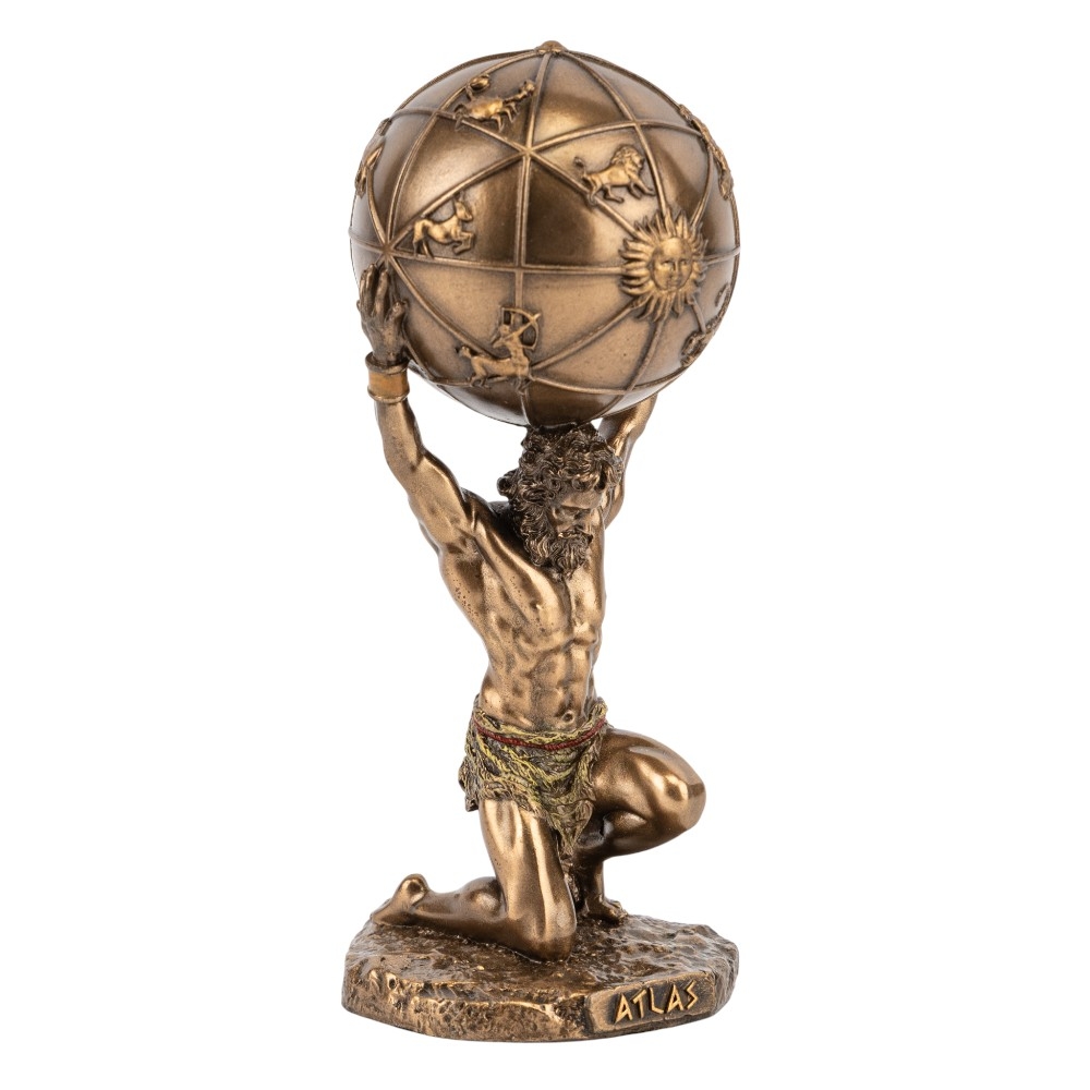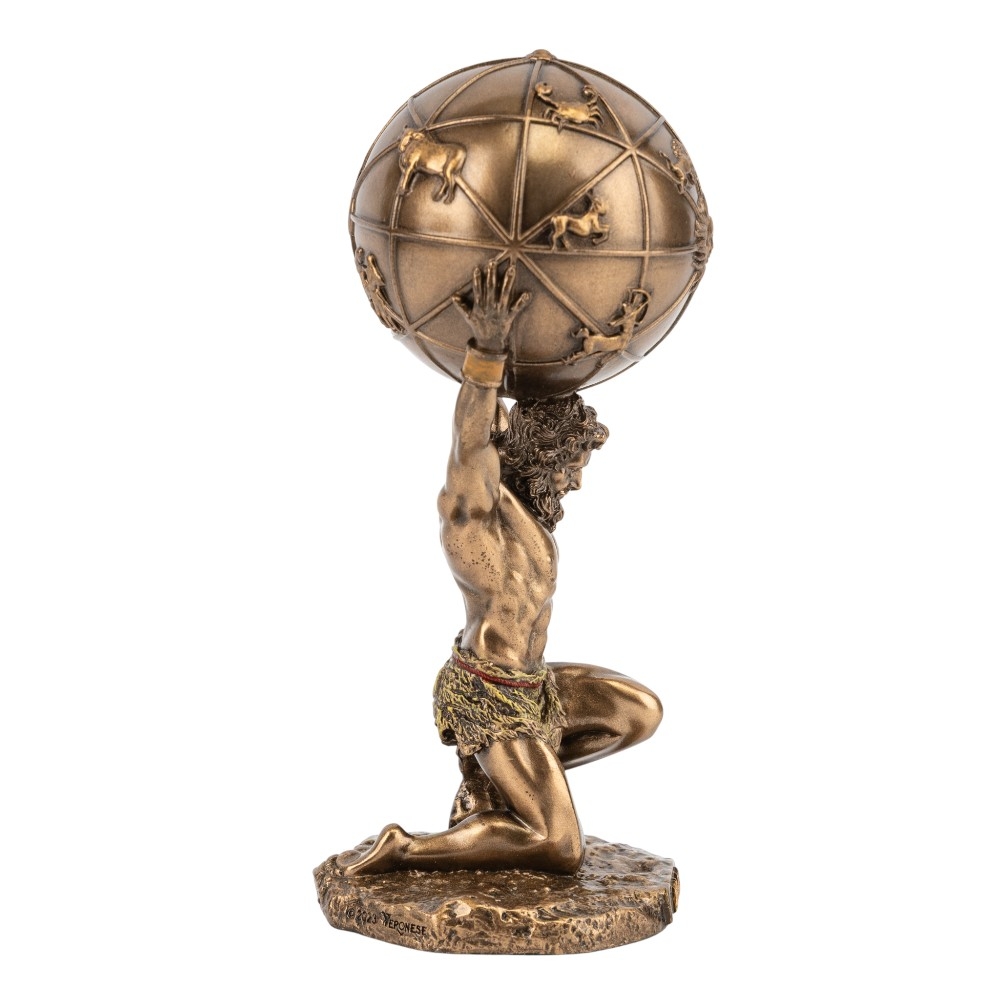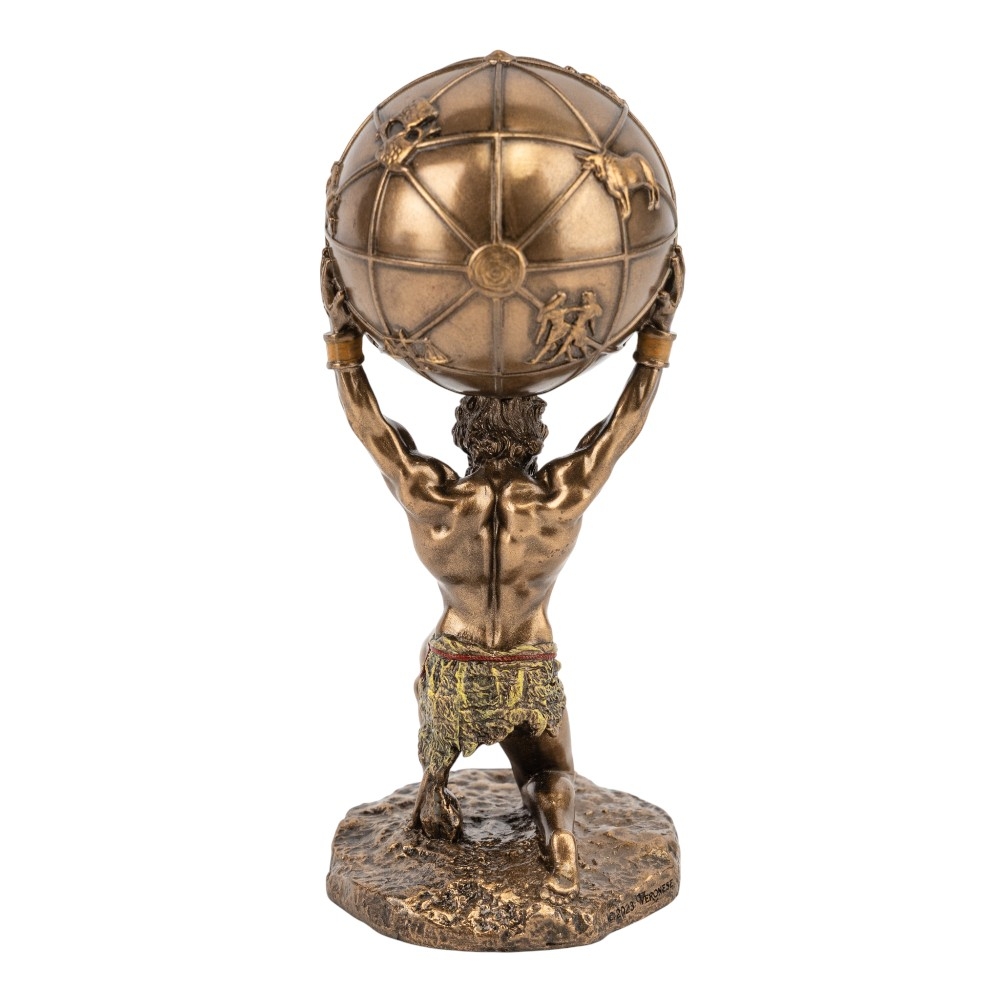 Висота статуетки — 13,5 см, діаметр — 5,5 см. Статуетка Veronese виготовлена з полістоуну — штучного каменю. Запакована в подарункову коробку. Упаковка з пінопласту з індивідуальними поглибленнями для кожного елемента забезпечує максимальний захист товару під час транспортування. Ця велична статуетка увічнює міфологічний образ титана Атласа (Атланта). Згідно з давньогрецькими міфами, Атлас був засуджений вічно тримати на своїх плечах небесне склепіння на краю світу. Фігура титана зображена у момент неймовірного напруження, коли він стоїть на одному коліні, підтримуючи масивний глобус. Небесна сфера, яку тримає Атлас, деталізована знаками зодіаку, що підкреслює його роль у підтримці космосу. Виріб, виконаний з полістоуну з благородним бронзовим напиленням, символізує незламну силу, витривалість та відповідальність. Це ідеальний подарунок для керівника, амбітної людини або того, хто щодня несе на своїх плечах великий тягар відповідальності.
