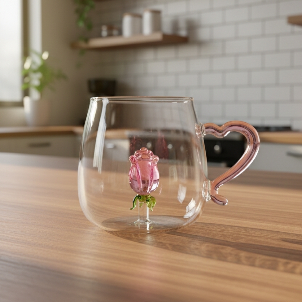 Висота - 9 см, діаметр - 7 см, довжина з ручкою - 12 см. Об'єм 450 мл. Запакована у білу картонну коробку. Скляна кружка з декоративною скляною трояндою всередині - відмінний варіант подарунка на будь-яке свято! Рідні та друзі будуть в захваті від такої чарівної кружки! Кружка виготовлена з високоякісного скла, що робить її відносно стійкою до пошкоджень та подряпин. Об'єм кружки робить їх ідеальними для кави, чаю, гарячого шоколаду та інших улюблених напоїв. Це чудовий вибір для роздрібних торговців, кафе, ресторанів та покупців, які цінують якість і стиль. Приєднуйтеся до нашої спільноти задоволених клієнтів і насолоджуйтеся кожним ковтком з наших керамічних кружок!