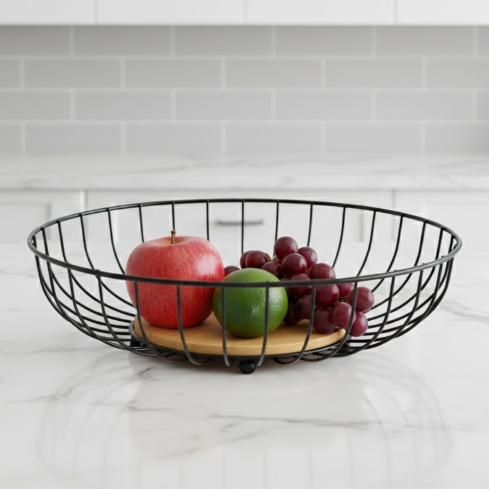Зверніть увагу, що внаслідок недавньої атаки дронів частина партії має незначний аромат гарі, який повністю вивітрюється протягом короткого часу. Діаметр - 28 см. Висота - 7 см. Металева фруктівниця виповнена у сучасному мінімалістичному стилі. Це не тільки практична річ, а й витончений елемент декору. Чорний стриманий дизайн виглядатиме ідеально на будь-якій кухні, у кафе чи фотостудії. Відмінний варіант для зберігання фруктів, овочів, цукерок тощо.