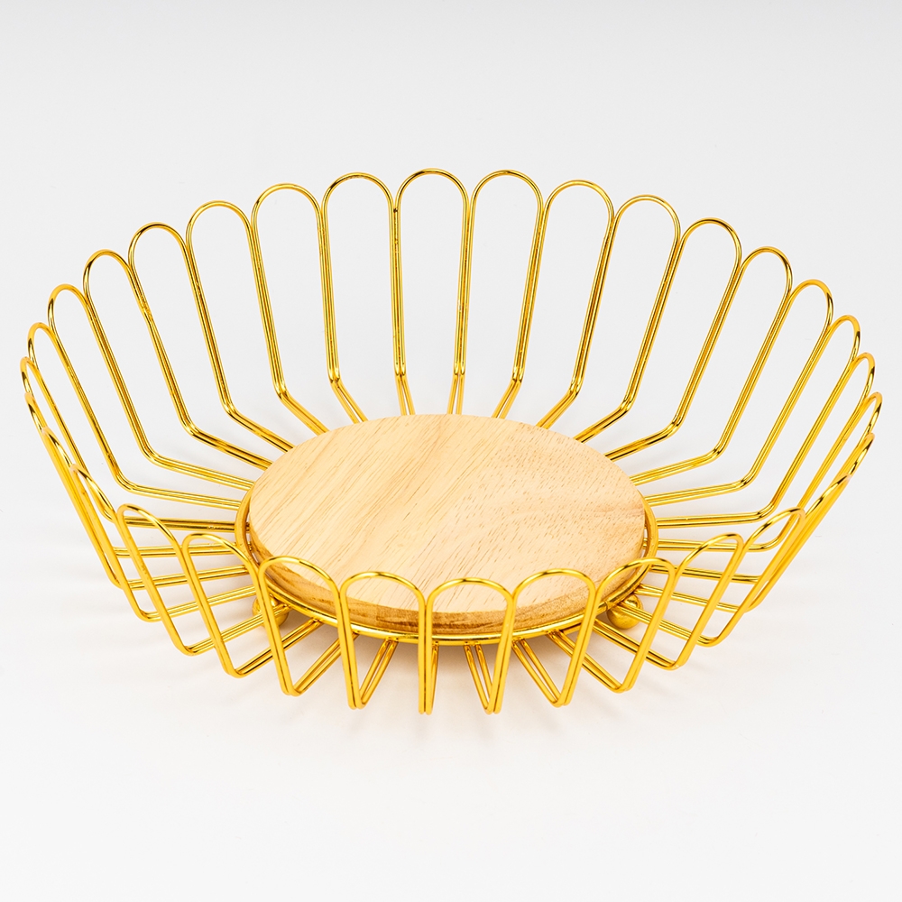 Зверніть увагу, що внаслідок недавньої атаки дронів частина партії має незначний аромат гарі, який повністю вивітрюється протягом короткого часу. Діаметр - 28 см. Висота - 9 см. Металева фруктівниця виповнена у сучасному мінімалістичному стилі. Це не тільки практична річ, а й витончений елемент декору. Золотий вишуканий дизайн виглядатиме ідеально на будь-якій кухні, у кафе чи фотостудії. Відмінний варіант для зберігання фруктів, овочів, цукерок тощо.