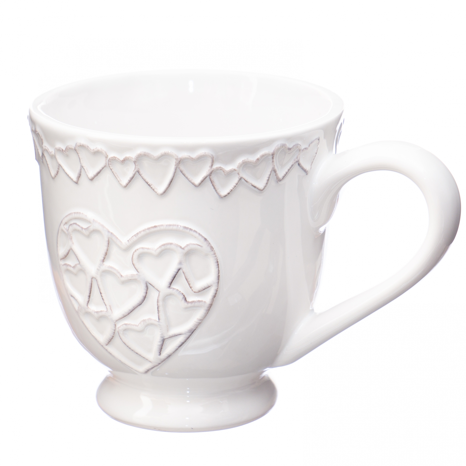Чашка "Серця" для чаю, кави та інших напоїв. Виготовлена із кераміки. Має елегантний дизайн, надійна та проста у використанні. Зручна форма чашки сприяє приємному чаювання. Щільні стінки довго збережуть тепло напою. Кубок білого кольору підійде практично для будь-якої кухні. Вона гарна як для використання вдома, так і для подарунка.