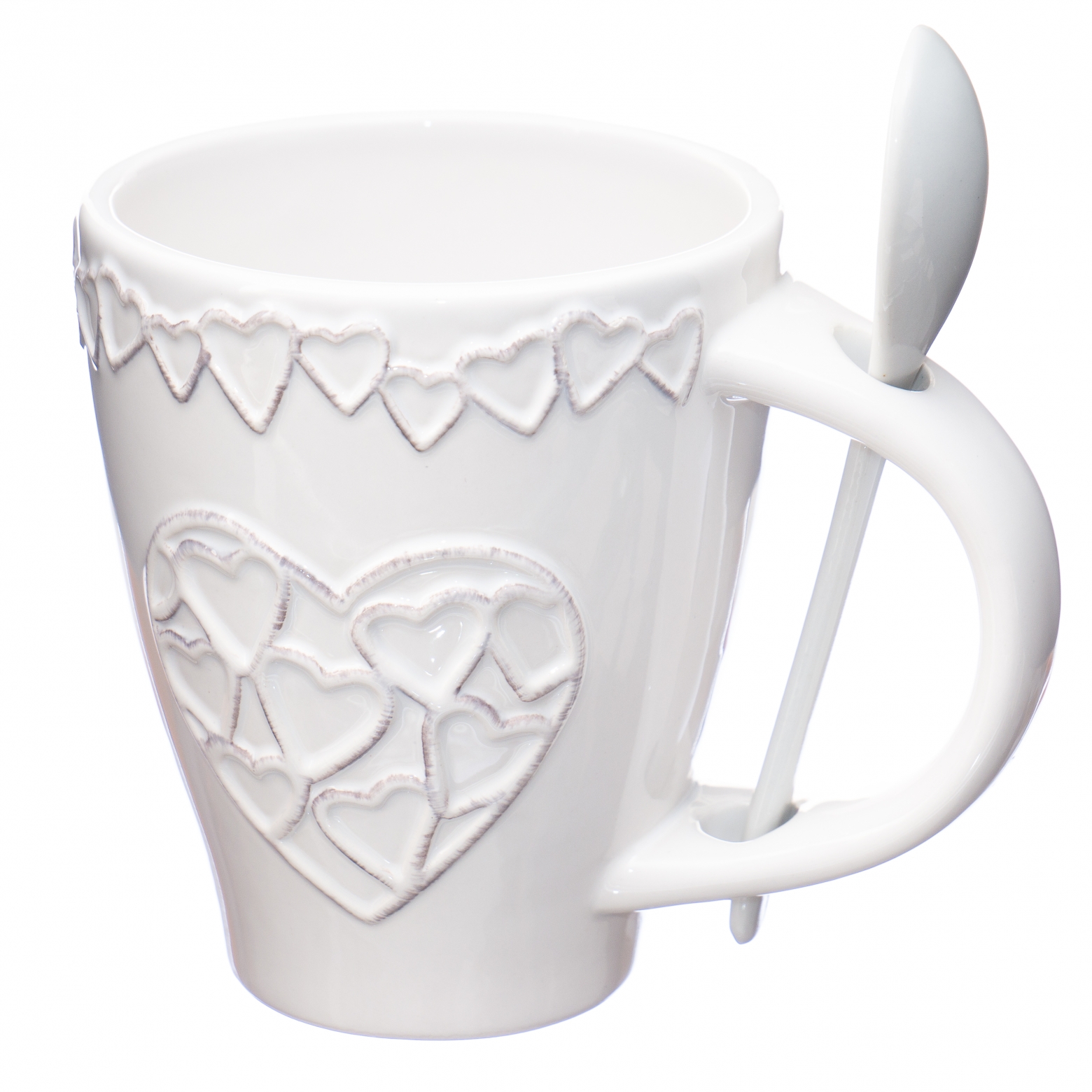 > УЦІНКА Чашка з ложкою "Серця" (Дефект лиття,маленькі отвори,напливи,здерте покриття) (00BR-002AS)