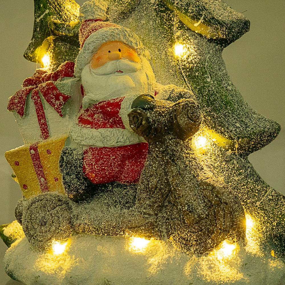 > УЦІНКА Велика Статуетка «Дід мороз з ялинкою» Висота 50см (Дефект кераміки,сколик/отвір,не світиться, на деяких немає кришки на відсіку для батарейок) (00BR-005NQ)