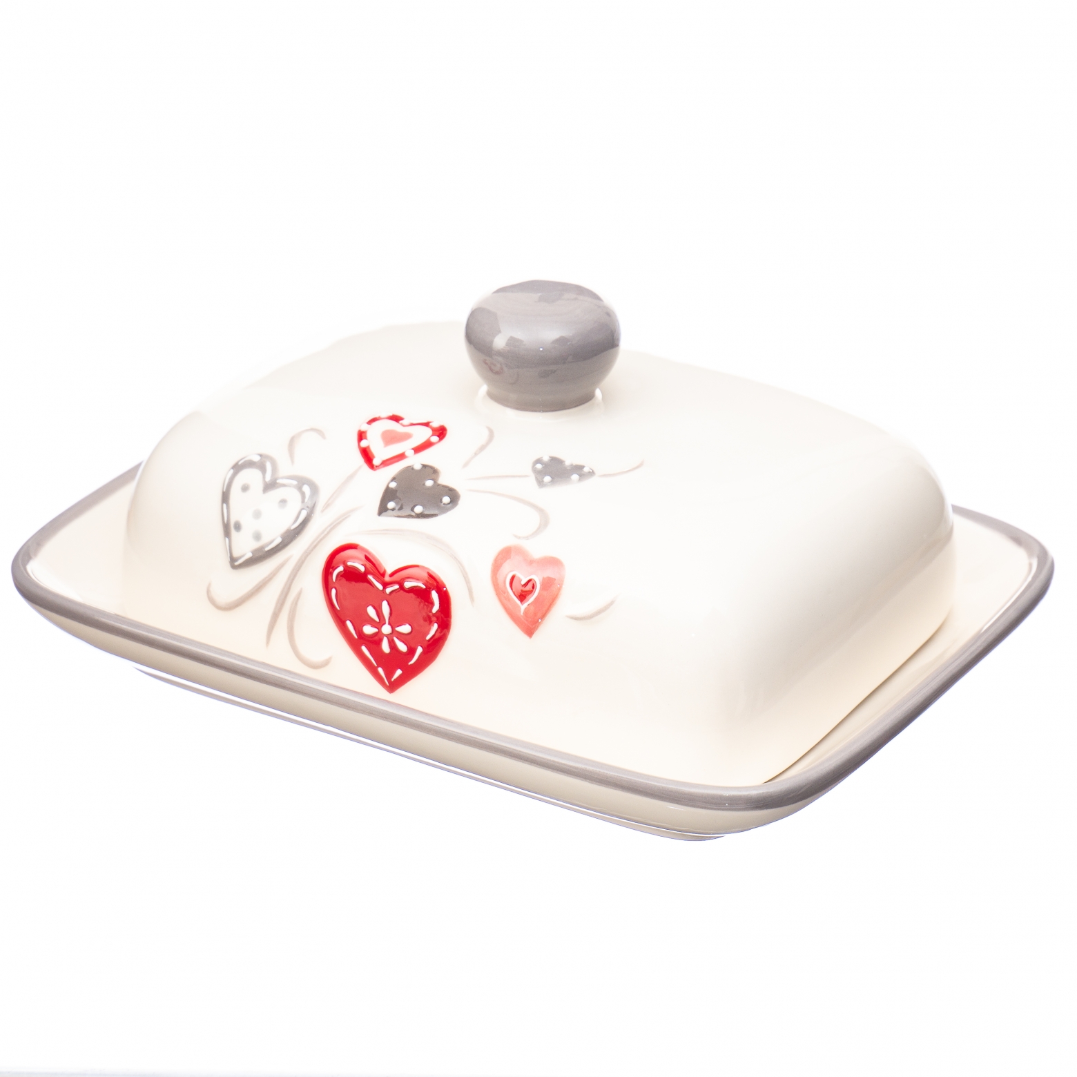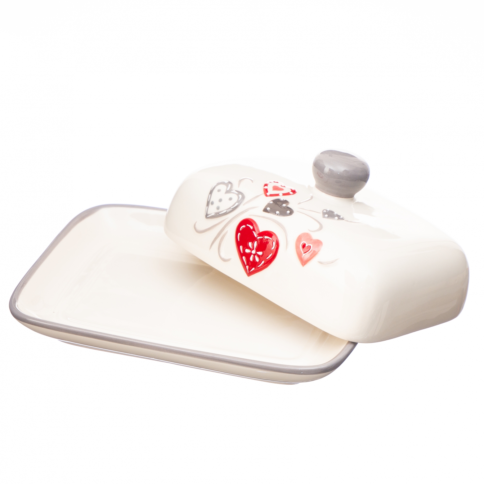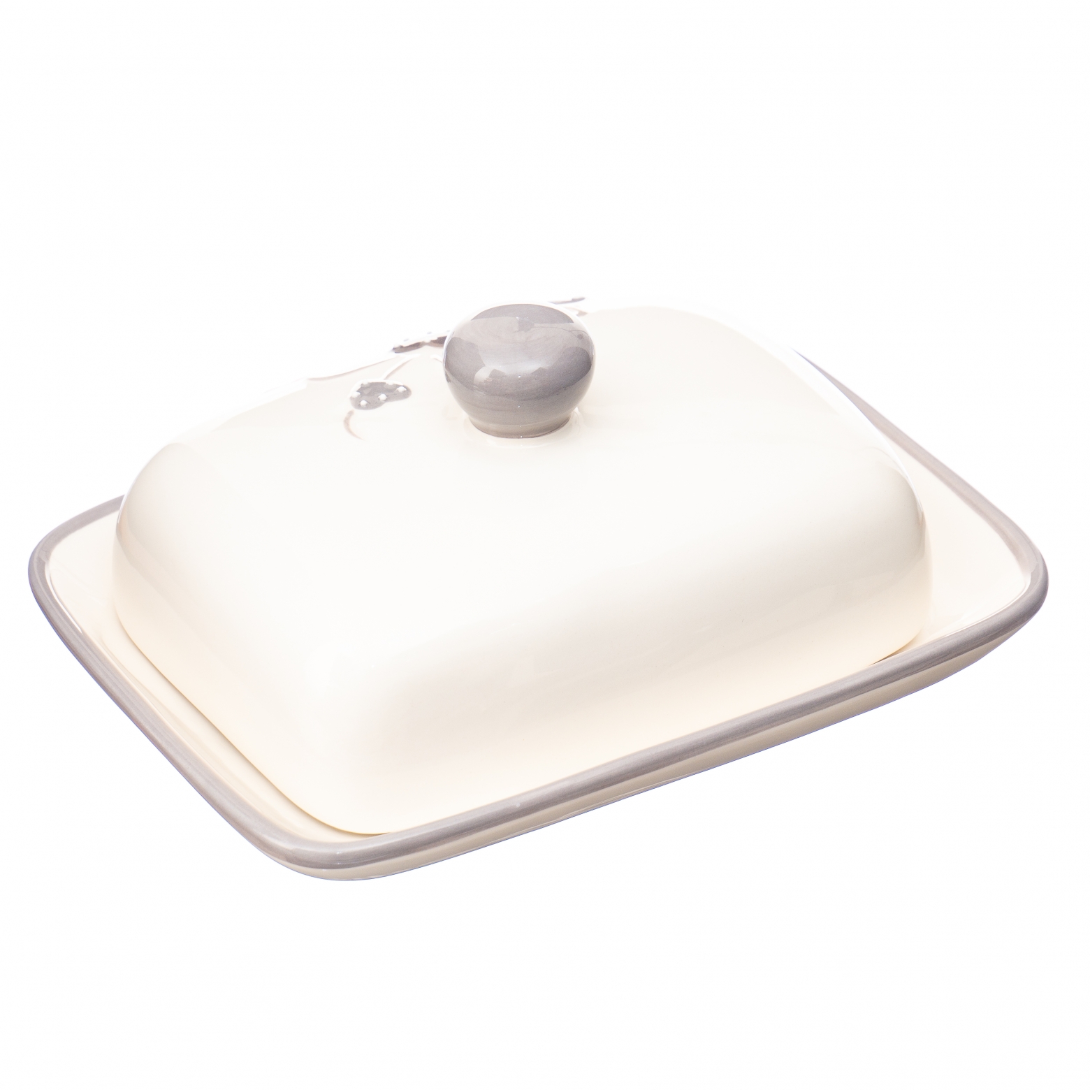 Красива і ніжна маслянка, незамінний посуд для зберігання масла та сиру в холодильнику. Керамічна, білого кольору з малюнком є зручна кришка. Вона захистить масло від обвітрювання, і ви зможете його красиво подати до столу. Можна також використовувати для подачі сиру. Маслянка практичний аксесуар на кухні, її легко мити, вона не займає багато місця і завжди буде під рукою.