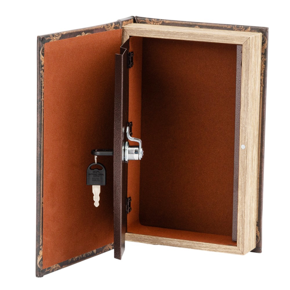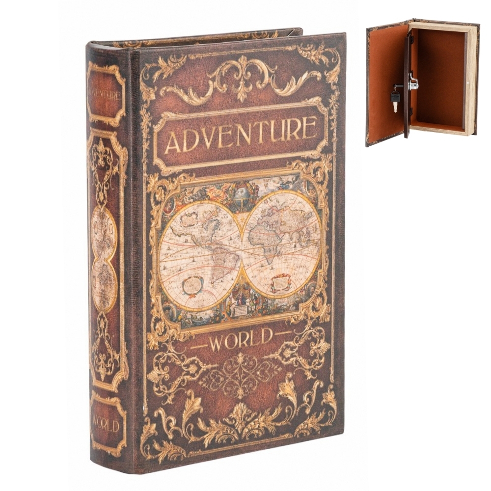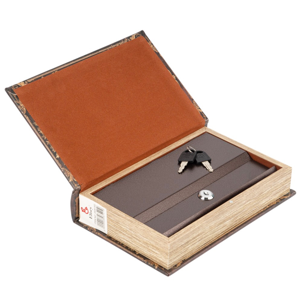 Висота - 26 см, довжина - 17 см, ширина - 5 см. Книга-сейф - це креативний інтер'єрний елемент, який виглядає як звичайна книга, але фактично має внутрішнє сховище. Це прихована система зберігання грошей, документів або інших цінних речей. Всередині сейф закривається на замок компактними ключами, які легко можна заховати в надійне місце. Це не тільки функціональна і корисна в повсякденному житті річ, а й унікально декорована. Завдяки своєму зовнішньому виду книга-сейф легко вписується в книжкову полицю та доповнює будь-який інтер'єр. Чудовий подарунок для друзів та колег.