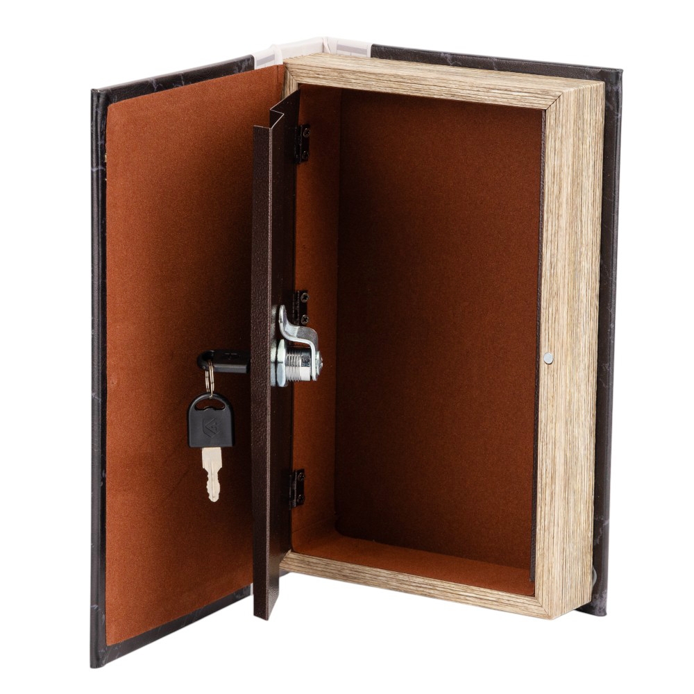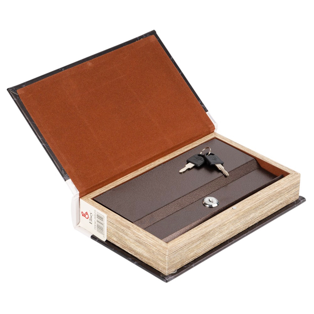 Висота - 26 см, довжина - 17 см, ширина - 5 см. Книга-сейф - це креативний інтер'єрний елемент, який виглядає як звичайна книга, але фактично має внутрішнє сховище. Це прихована система зберігання грошей, документів або інших цінних речей. Всередині сейф закривається на замок компактними ключами, які легко можна заховати в надійне місце. Це не тільки функціональна і корисна в повсякденному житті річ, а й унікально декорована. Завдяки своєму зовнішньому виду книга-сейф легко вписується в книжкову полицю та доповнює будь-який інтер'єр. Чудовий подарунок для друзів та колег.