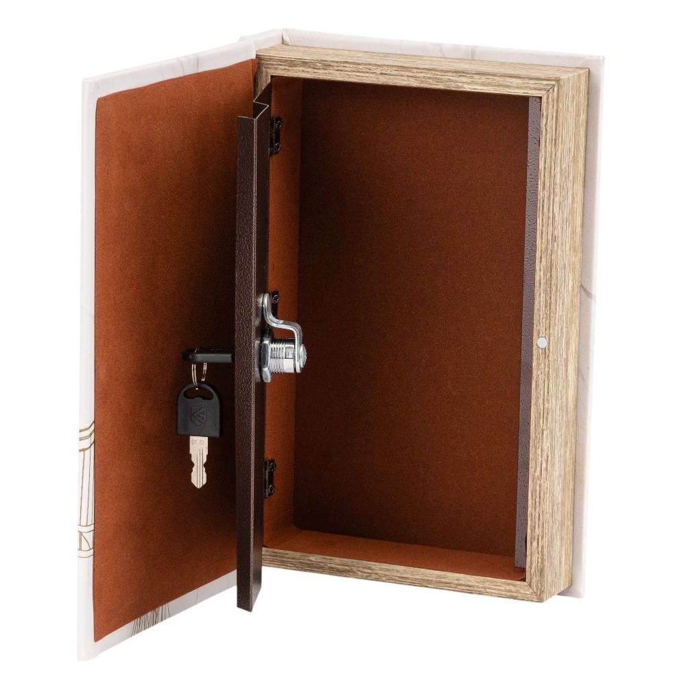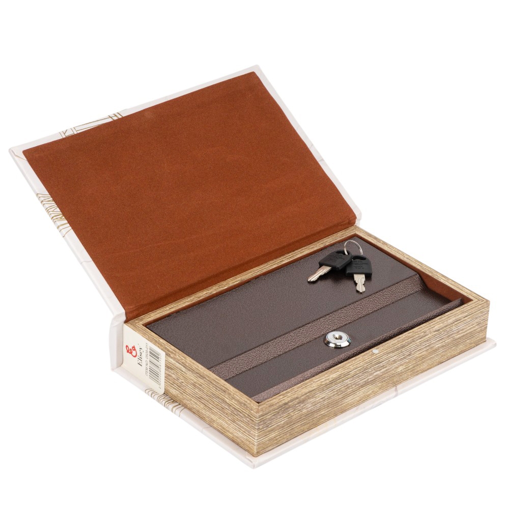Висота - 26 см, довжина - 17 см, ширина - 5 см. Книга-сейф - це креативний інтер'єрний елемент, який виглядає як звичайна книга, але фактично має внутрішнє сховище. Це прихована система зберігання грошей, документів або інших цінних речей. Всередині сейф закривається на замок компактними ключами, які легко можна заховати в надійне місце. Це не тільки функціональна і корисна в повсякденному житті річ, а й унікально декорована. Завдяки своєму зовнішньому виду книга-сейф легко вписується в книжкову полицю та доповнює будь-який інтер'єр. Чудовий подарунок для друзів та колег.