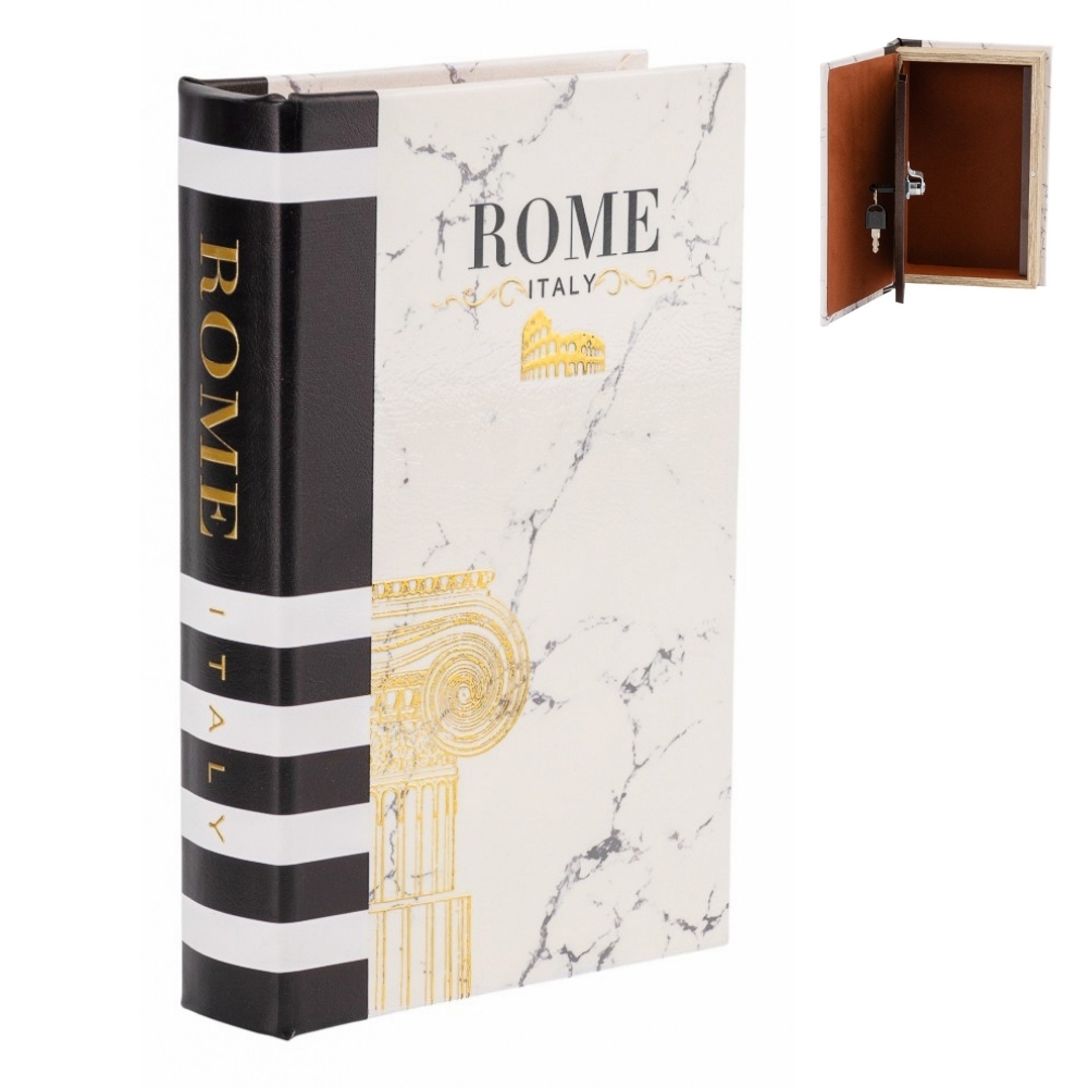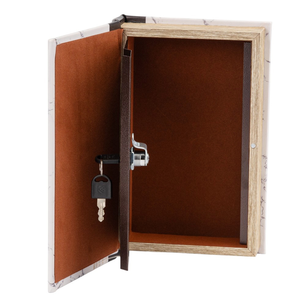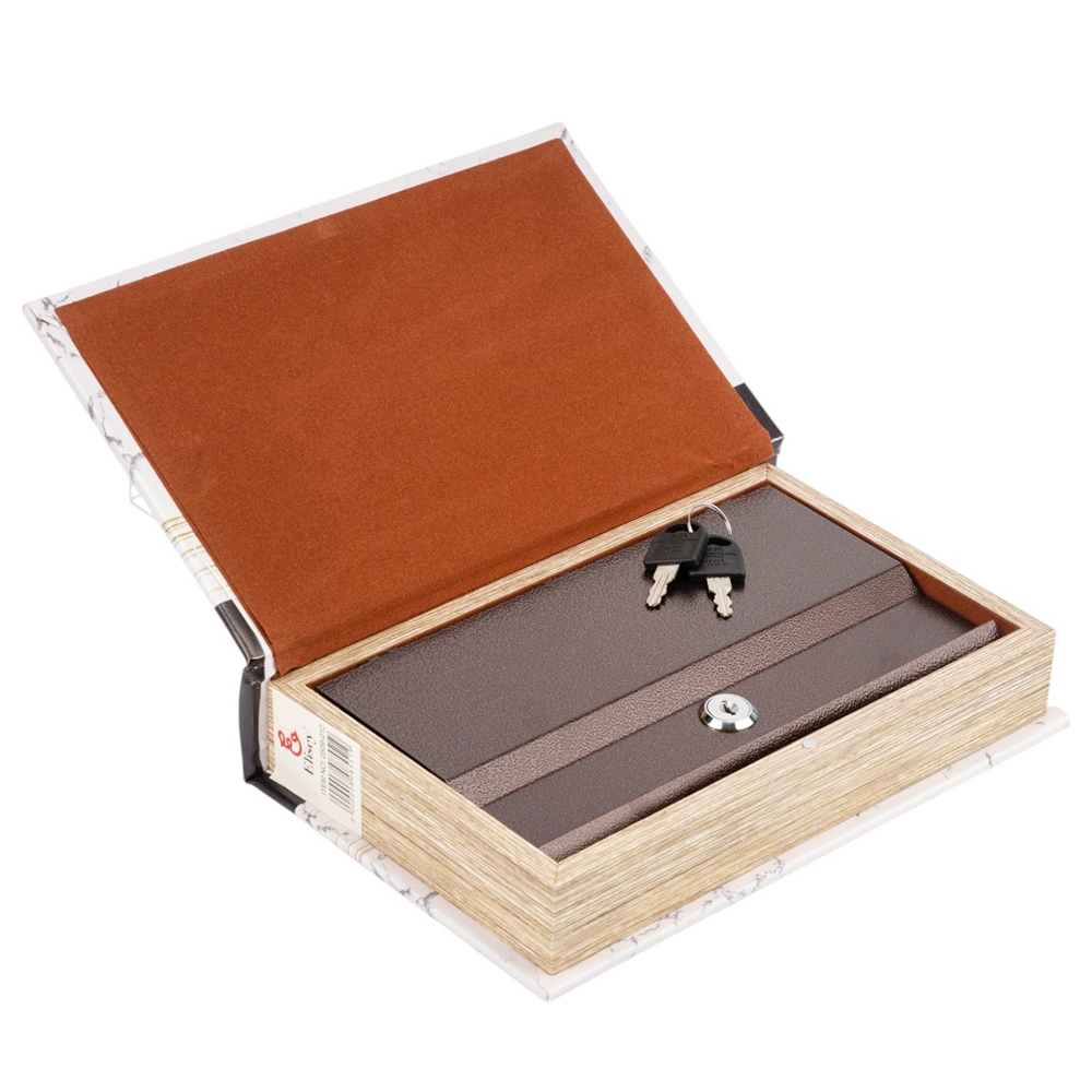 Висота - 26 см, довжина - 17 см, ширина - 5 см. Книга-сейф - це креативний інтер'єрний елемент, який виглядає як звичайна книга, але фактично має внутрішнє сховище. Це прихована система зберігання грошей, документів або інших цінних речей. Всередині сейф закривається на замок компактними ключами, які легко можна заховати в надійне місце. Це не тільки функціональна і корисна в повсякденному житті річ, а й унікально декорована. Завдяки своєму зовнішньому виду книга-сейф легко вписується в книжкову полицю та доповнює будь-який інтер'єр. Чудовий подарунок для друзів та колег.