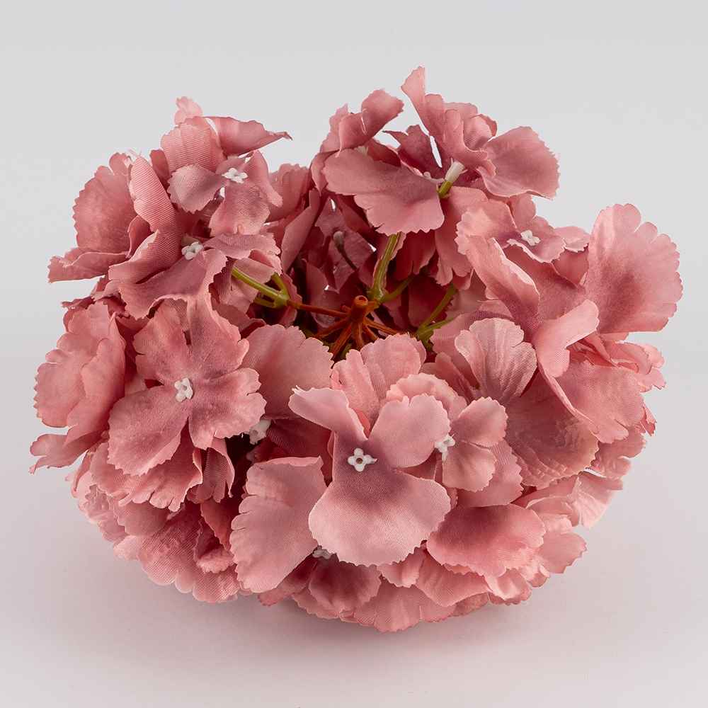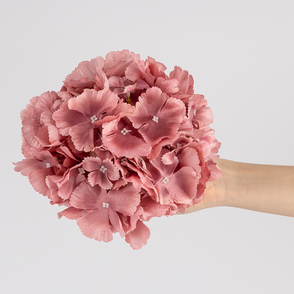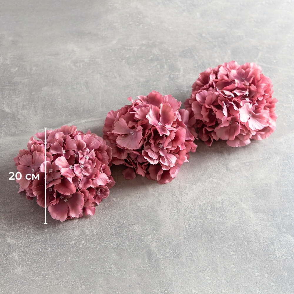 Діаметр - 20 см, висота - 12 см. Штучна головка гортензії стане витонченим елементом у флористичних композиціях, декорі інтер’єру або оформленні заходів. Пелюстки й листя виготовлені з якісної тканини, що надає бутону природного вигляду. Хвостик стебла виконаний із міцного пластику, що полегшує фіксацію у флористичних піні або композиціях. Ідеально підходить для декораторів та сегменту HoReCa.