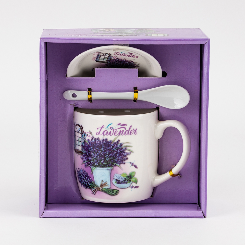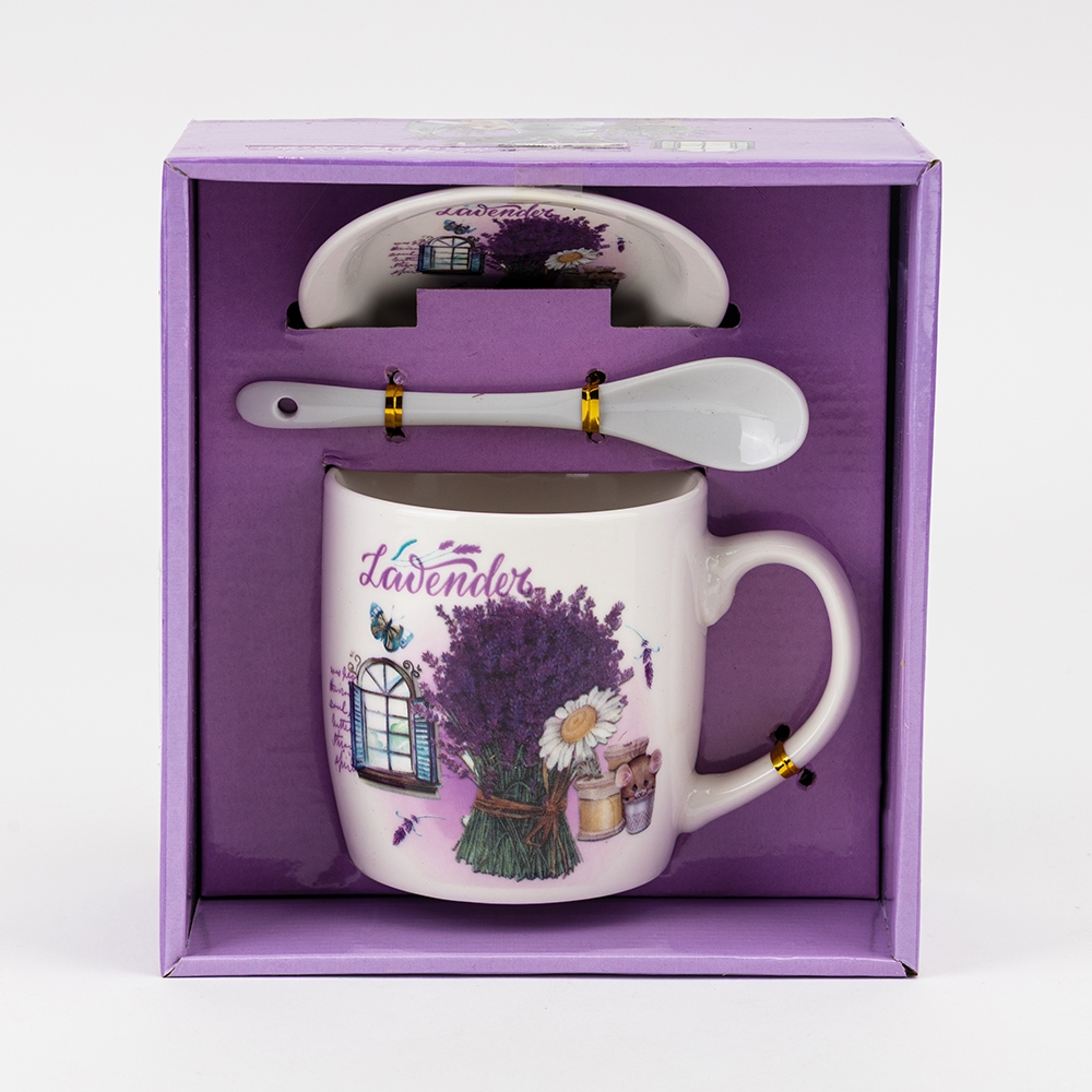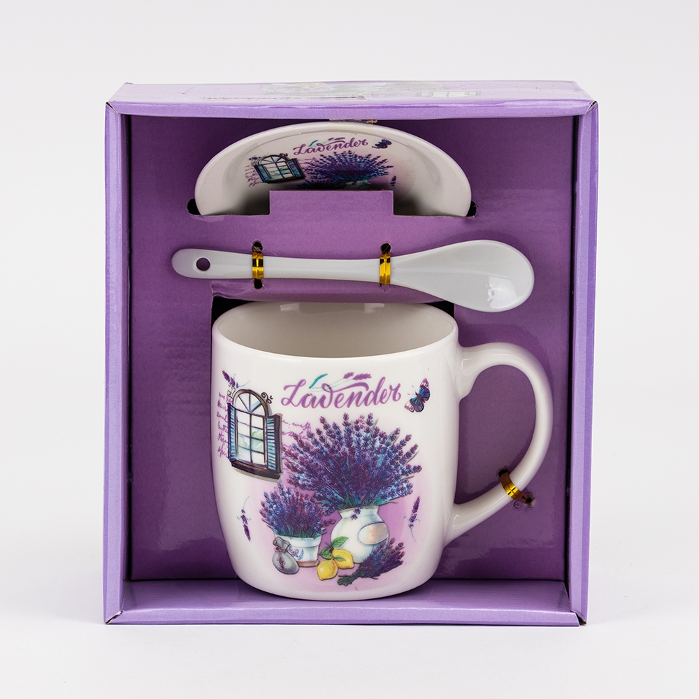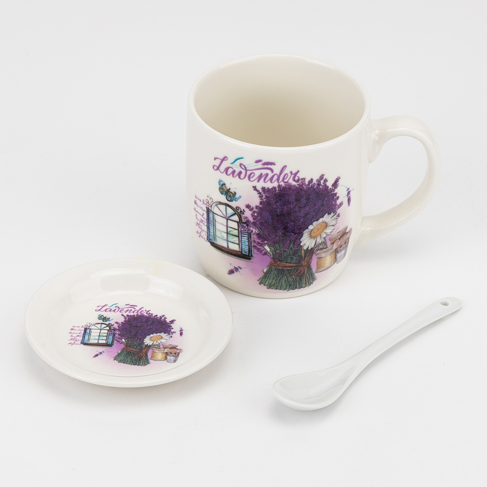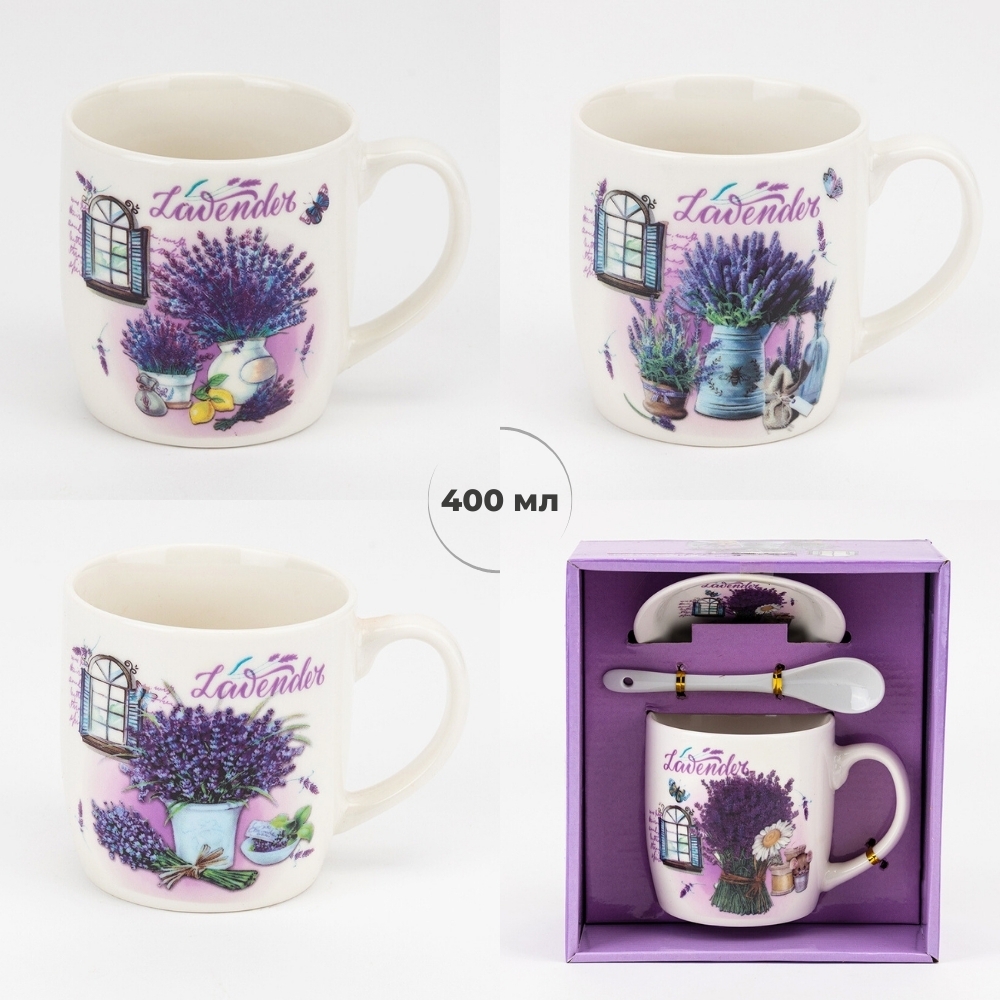 Кружка з блюдцем та ложечкою "Лаванда", 400 мл * Рандомний вибір дизайну (19298-001)