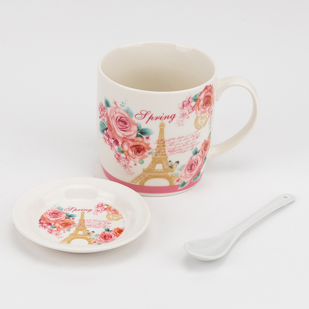 Набір з 2 кружок з блюдцями та ложечками "Париж", 400 мл * Рандомний вибір дизайну (19298-013)