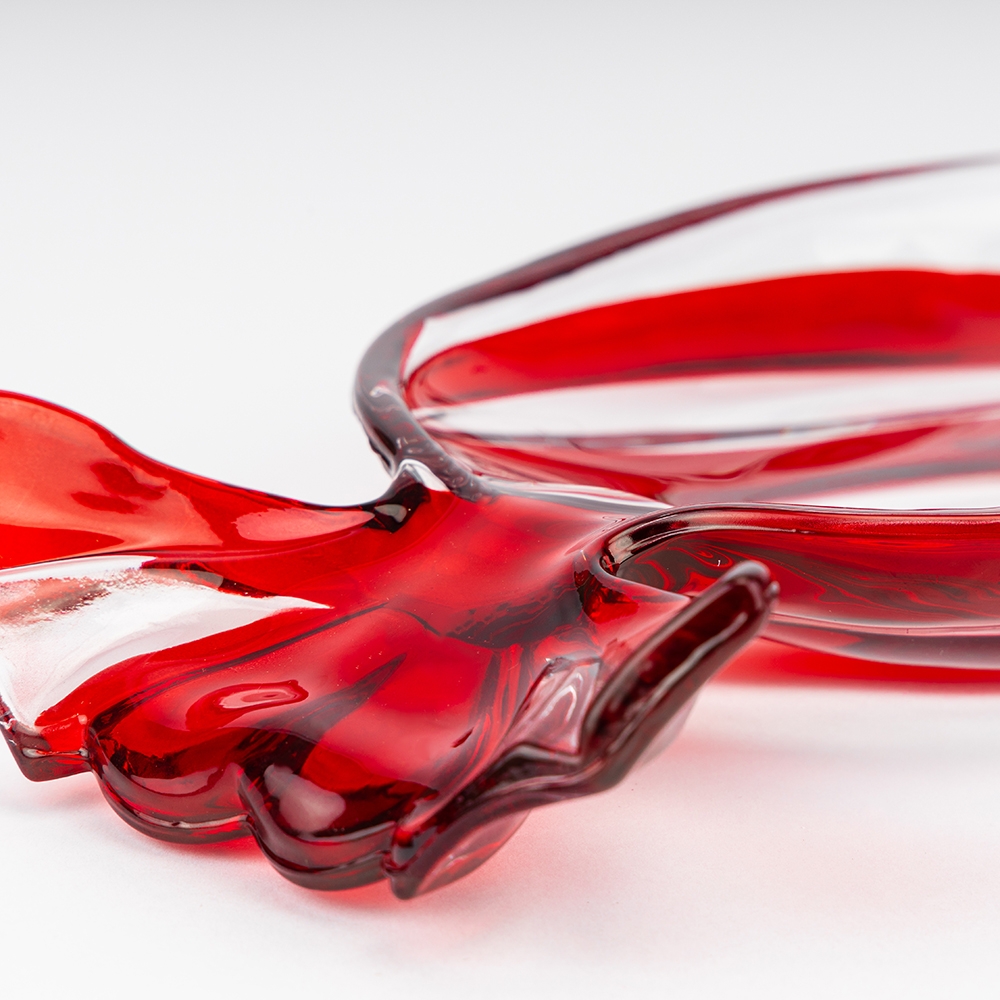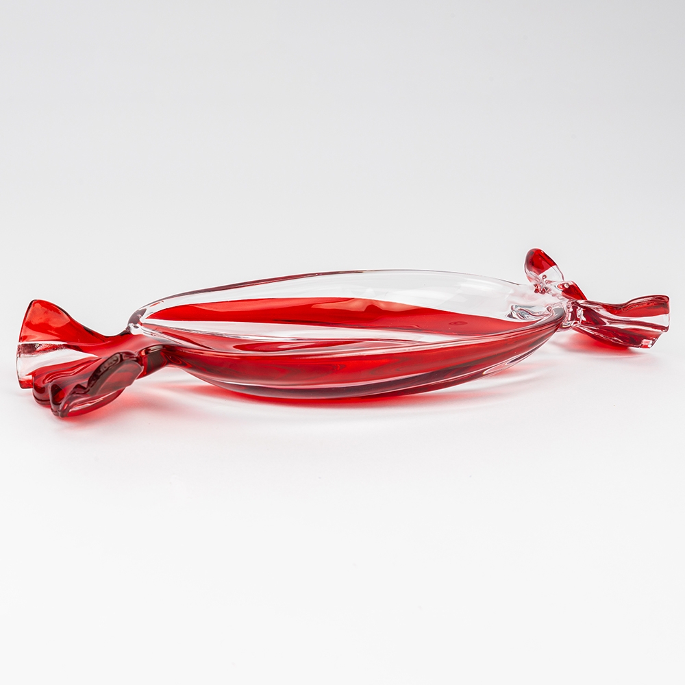Довжина — 34,5 см, ширина — 15 см, висота — 4 см. Декоративне скляне блюдо у формі цукерки стане яскравим акцентом у сервіруванні. Його прозоре скло з червоними смугастими візерунками створює ефект святкової атмосфери та додає оригінальності інтер’єру. Такий посуд чудово підходить для подачі цукерок, дрібних десертів чи печива, а також може використовуватися як стильний елемент декору на новорічному чи тематичному столі. Завдяки незвичній формі блюдо стане не лише практичним аксесуаром, а й ефектною прикрасою вашої оселі.