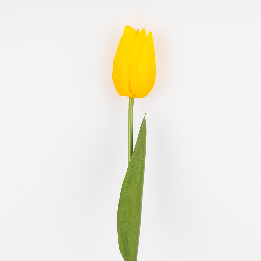 Висота — 45 см. Діаметр бутона — 5 см. Штучний тюльпан з колекції «Ніжний дотик» вражає своєю реалістичністю — пелюстки мають м’яку натуральну текстуру, яку практично неможливо відрізнити від живої квітки. Міцне та водночас гнучке стебло дозволяє легко надавати тюльпану потрібну форму, що робить його ідеальним для флористичних композицій, оформлення фотозон, залів, святкових декорацій чи інтер’єрного декору. Листя з латексу додає ще більше природності та глибини образу. Професійний вибір для ресторанів, готелів, фотостудій та флористів, яким потрібна квітка, що не відрізняється від живої та зберігає бездоганний вигляд у будь-яких умовах.