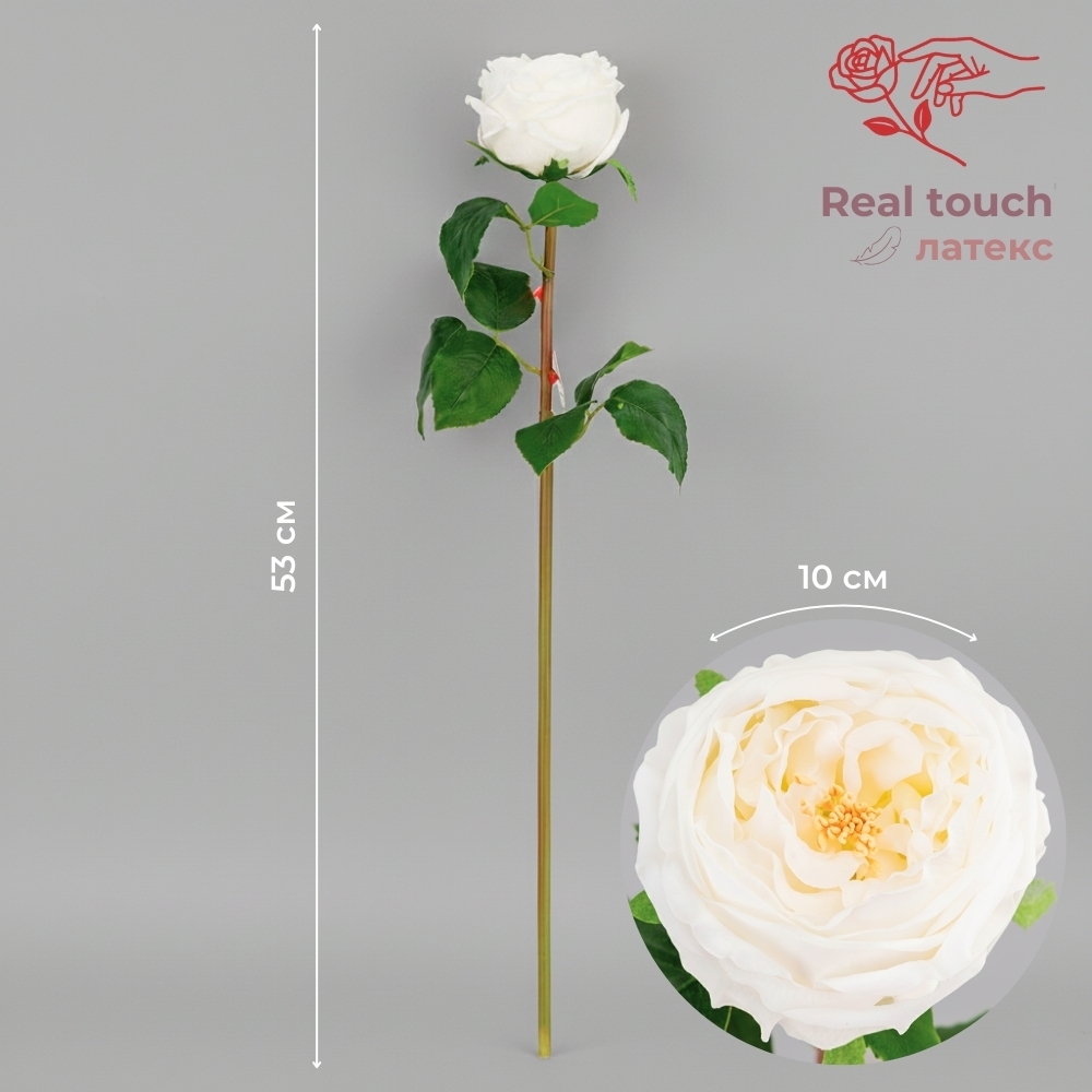 Висота — 53 см. Діаметр бутона — 10 см. Штучна піоновидна троянда з колекції «Ніжний дотик» вражає максимальною реалістичністю — пелюстки мають м’яку текстуру, яку практично неможливо відрізнити від живої квітки. Вона виглядає натурально, зберігає форму та бездоганний вигляд навіть при багаторазовому використанні. Гнучке стебло дозволяє легко формувати композиції, а листя з латексу додає ще більше природності. Ідеально підходить для флористичних робіт, оформлення фотозон, залів, столів, а також для декору ресторанів, готелів та будь-яких інтер’єрів, де потрібна вишукана й правдоподібна квітка, що не відрізняється від живої.