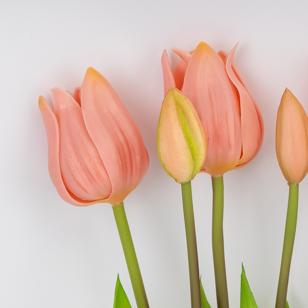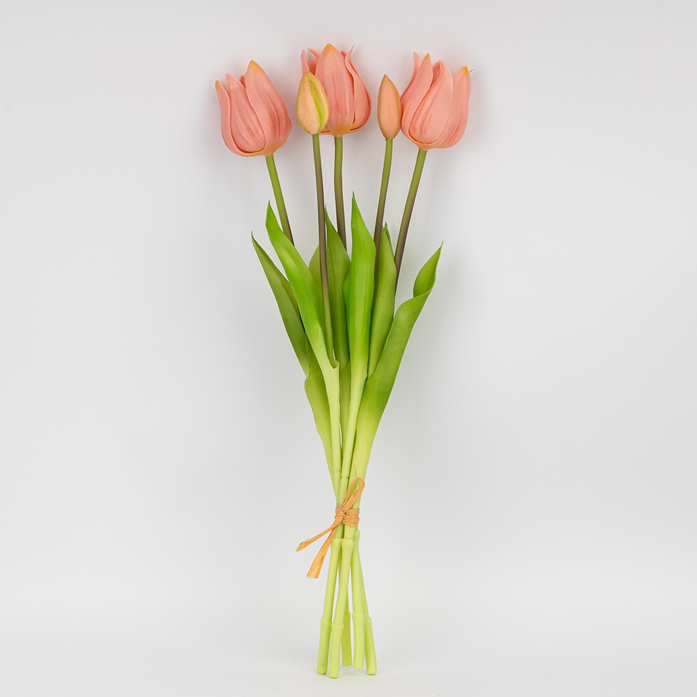 Букет з 5 тюльпанів. Висота букету - 50 см, діаметр бутону - 5 см. Виготовлений з латексу. Букет тюльпанів з латексу - витончена композиція, що вражає своєю неповторною красою та реалістичністю, відтворюючи живі квіти з великою деталізацією. Такий букет є ідеальним варіантом для створення декоративних композицій, декорування святкових заходів, фотостудій, вітрин магазинів, кафе тощо! Букет залишиться свіжим та привабливим протягом тривалого часу без надмірного догляду.