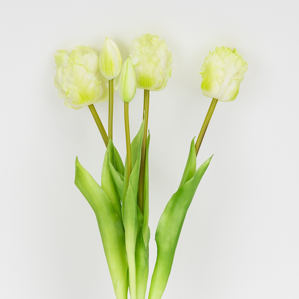 Букет латексних тюльпанів, 5 бутонів, біло-зелений, 44 см (2026-004/white)