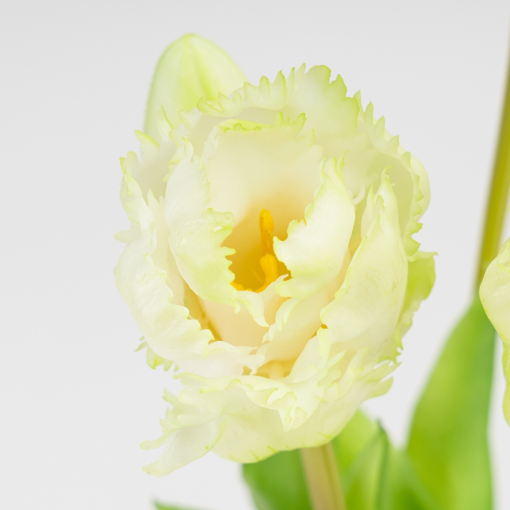Букет з 5 тюльпанів. Висота букету — 44 см, діаметр бутону — 5 см. Виготовлений з латексу. Букет тюльпанів з латексу — витончена композиція, що вражає своєю реалістичністю, максимально точно відтворюючи вигляд живих квітів. Форма бутонів нагадує рідкісний сорт тюльпанів з «інієм» на пелюстках — краї виглядають ніби злегка припорошені морозом, з характерною фактурою та природною нерівністю, притаманною справжнім квітам. Завдяки цьому тюльпани мають живий, природний вигляд і створюють ефект щойно зрізаного букета. Така особлива форма робить композицію вишуканою та дуже правдоподібною, ідеальною для декору святкових заходів, фотостудій, вітрин магазинів, кафе та інтер’єрних композицій. Букет зберігає привабливий вигляд протягом тривалого часу без жодного догляду.