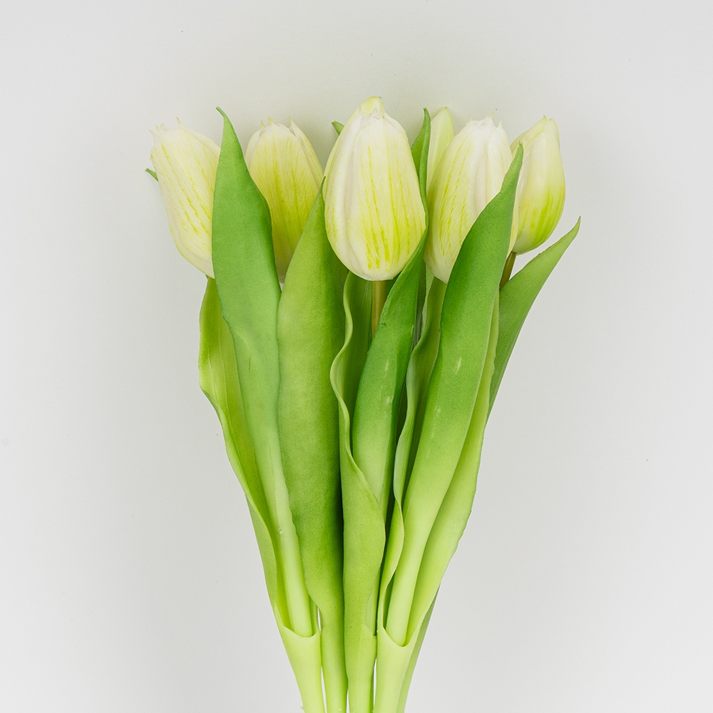 Букет латексних тюльпанів, 7 бутонів, біло-зелений, 31 см (2026-006/white)