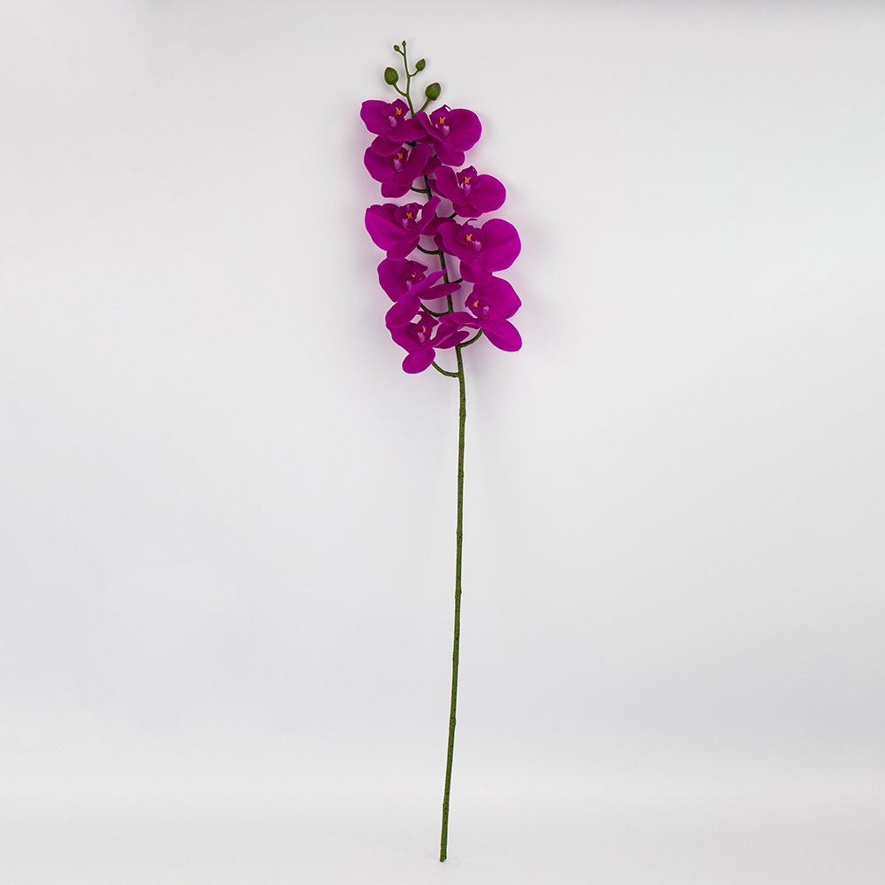Висота - 95 см. Діаметр квітки - 10 см. Квіти виконані з латексу, стебла - з пластику. Штучна гілка орхідеї з витонченими пелюстками та реалістичними бутонами додає елегантності будь-якому інтер’єру. Квітка має граційні вигини та деталізовану текстуру, що максимально наближена до живої рослини. Ідеально підходить для декору вітрин, ресторанів чи фотозон.