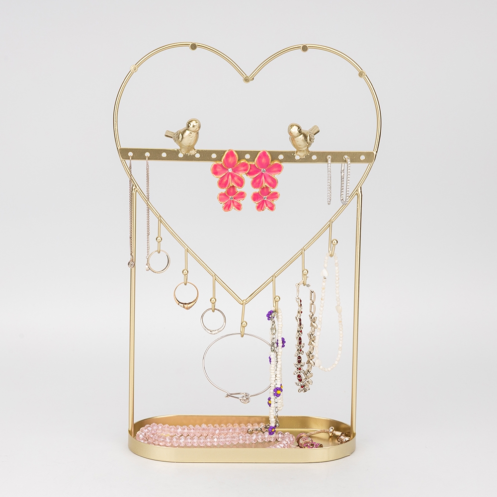 Висота — 33 см, довжина — 18 см, ширина — 9 см. Настільна підставка для прикрас — справжня втілення елегантності та краси. Виготовлена з металу з золотистим покриттям, вона має витончений дизайн, що відтіняє його блискучий вигляд. Підставка має різноманітні відділення та крючки для розміщення прикрас будь-якої форми і розміру. Її стильний дизайн, який поєднує класичні форми з сучасними акцентами, додає вигляду не лише функціональності, але й вишуканості. Ця підставка — ідеальне рішення для організації та відображення вашої колекції прикрас, створена, щоб підкреслити красу кожного предмета.
