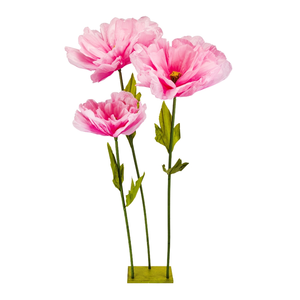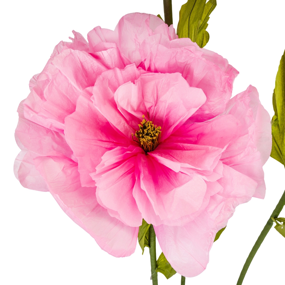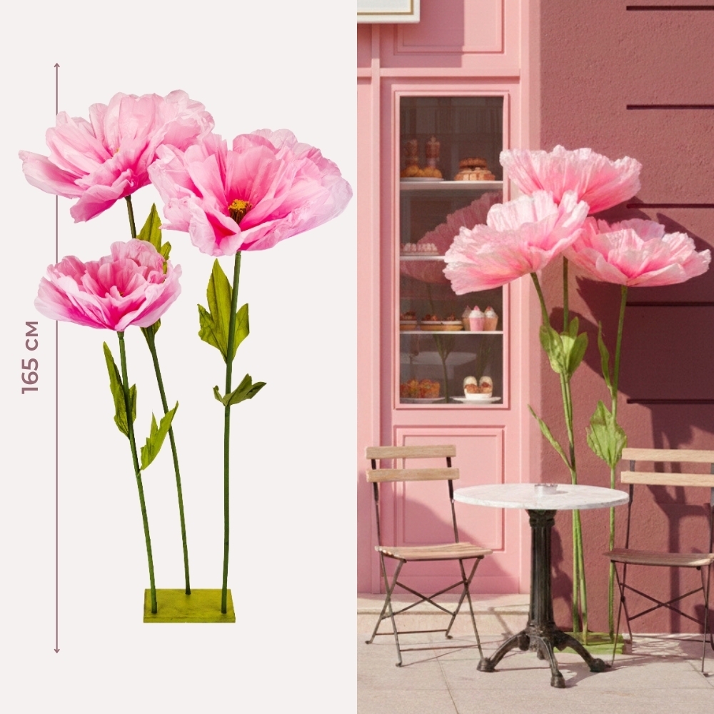 Висота - 165 см, діаметр бутона - 60 см. Розмір підставки - 30 см * 17 см. Ростові декоративні квіти ідеальні для професійного декорування вітрин, фотозон та івент-майданчиків. Конструкція розроблена для багаторазового використання: стебло є стійким, а підставка виконана з міцного ПВХ, гарантуючи надійну фіксацію. Пелюстки з ніжного гофрованого паперу є гнучкими, дозволяючи швидко змінювати їх форму під час монтажу. Весь комплект доставляється у розібраному вигляді, що суттєво оптимізує логістику та значно спрощує зберігання між проєктами. Цей декор є вигідним рішенням для швидкого та ефектного оформлення просторів.