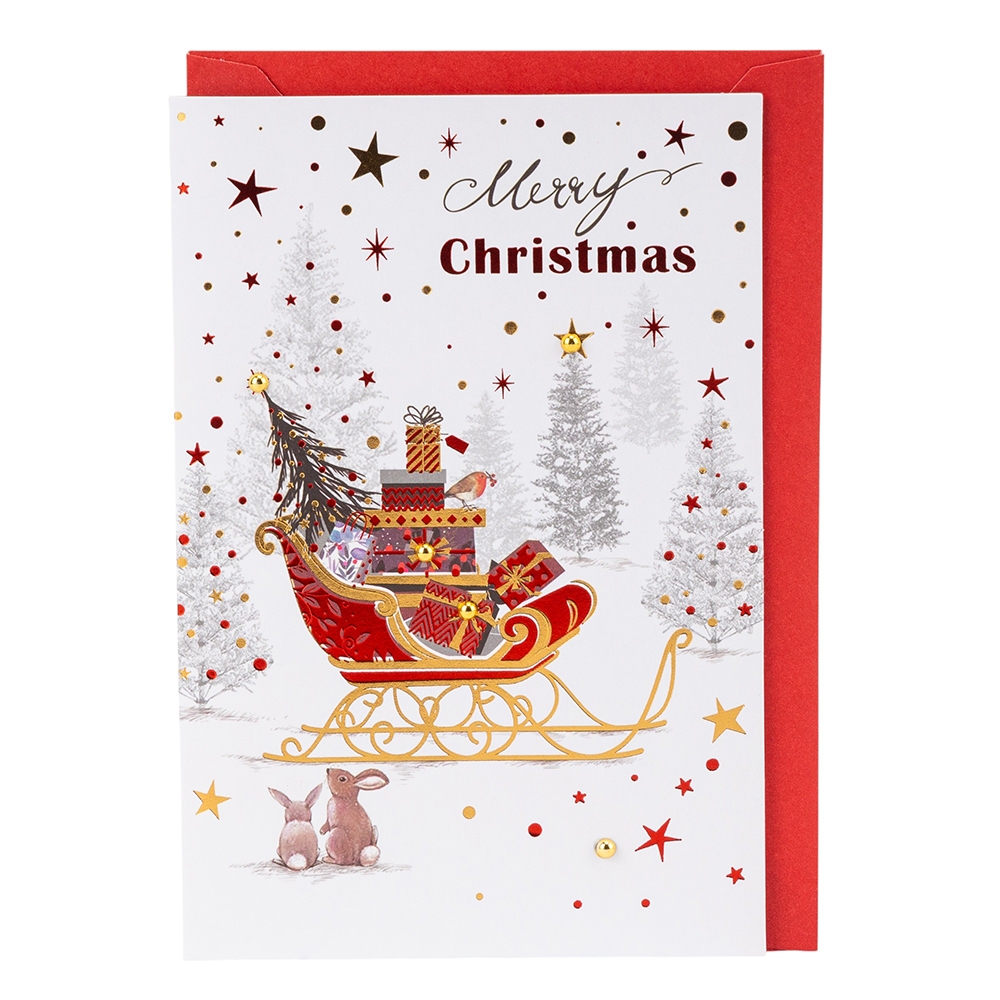 Вітальна листівка з конвертом до Нового Року "Сани" (3000-033)