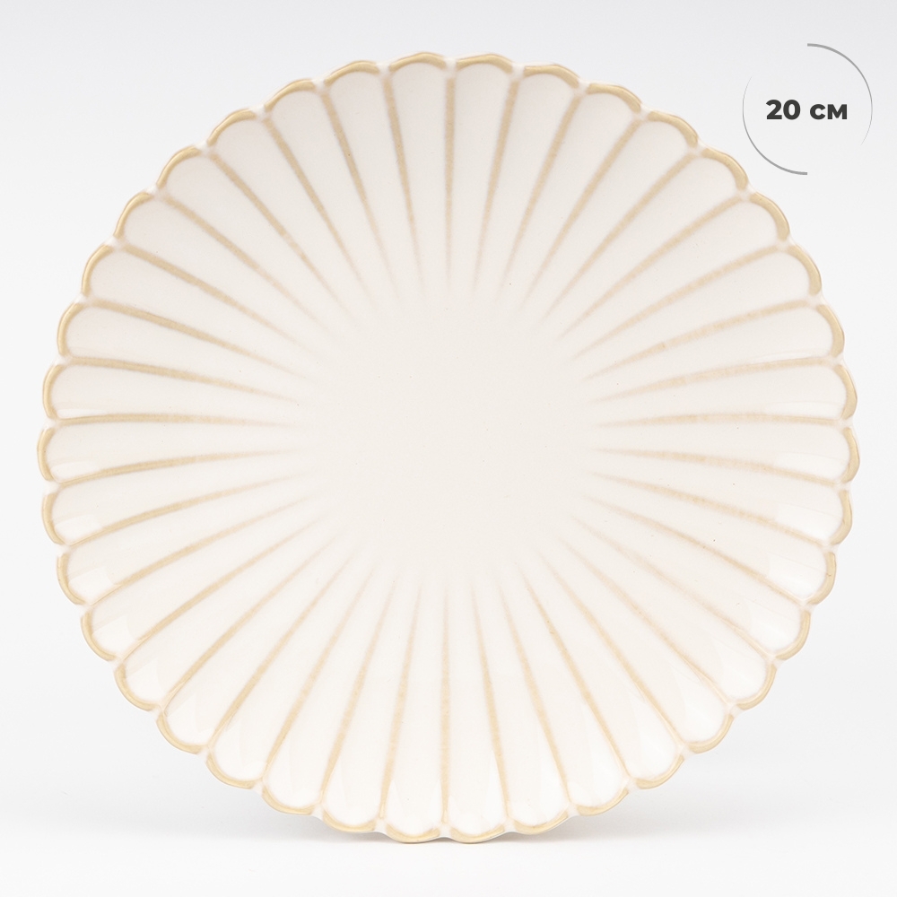 Діаметр - 20 см. Вишукана тарілка “Елеганс” — справжня знахідка для поціновувачів естетики. Її хвилясті краї та м’який перламутровий блиск створюють ефект ручної роботи. Вона ідеально виглядатиме як на святковому столі, так і на затишному домашньому сніданку — саме та “інстаграмна” краса, яка робить звичайну подачу страв особливою.