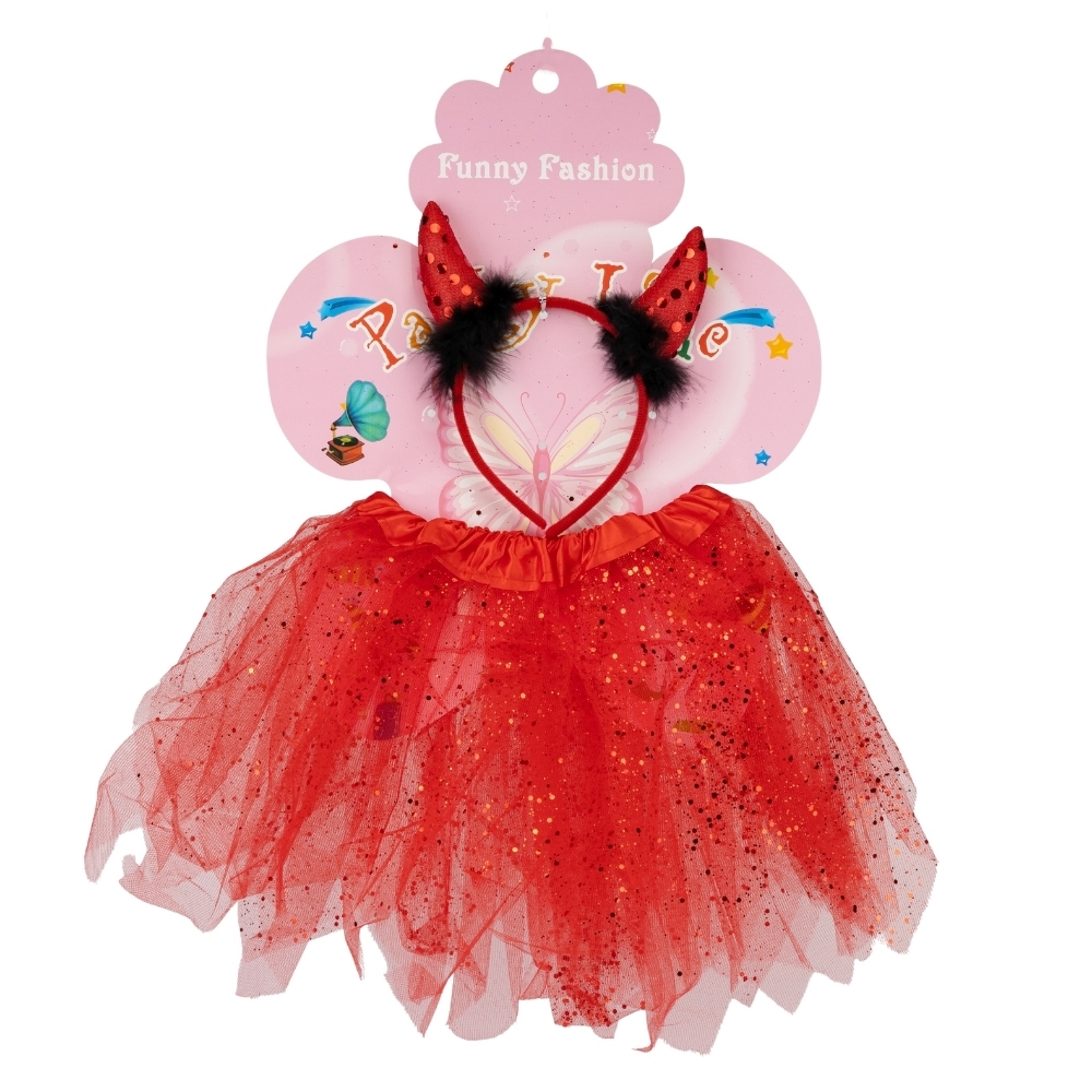 Карнавальний костюм на Хелловін - це чудовий спосіб створити загадковий образ для тематичної вечірки. Спідниця, виготовлена з легкого матеріалу та обруч на голову нададуть неперевершеного вигляду містичної сутності. Це ідеальний вибір для дівчаток, які бажають вразити на вечірці своєю елегантністю, втіленою в кожній деталі, та весело і комфортно відпочити!