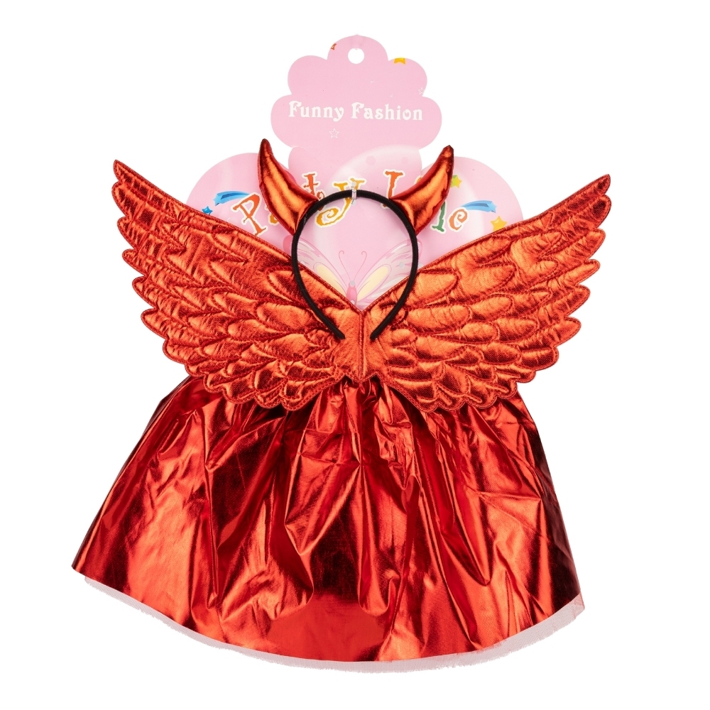 Карнавальний костюм на Хелловін - це чудовий спосіб створити загадковий образ для тематичної вечірки. Спідниця та крила виготовлеі з легкого матеріалу та обруч на голову нададуть неперевершеного вигляду містичної сутності. Це ідеальний вибір для дівчаток, які бажають вразити на вечірці своєю елегантністю, втіленою в кожній деталі, та весело і комфортно відпочити!
